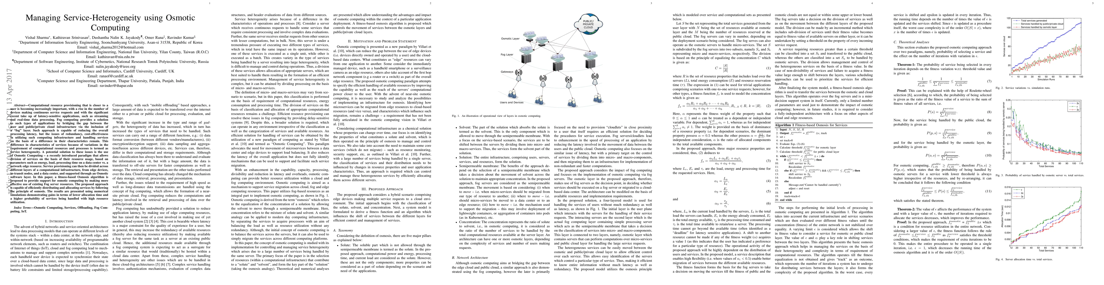 Computational resource provisioning that is closer to a user is becoming increasingly important, with a rise in the number of devices making continuous service requests and with the significant recent take up of latency-sensitive applications, such as streaming and real-time data processing. Fog computing provides a solution to such types of applications by bridging the gap between the user and public/private cloud infrastructure via the inclusion of a "fog" layer. Such approach is capable of reducing the overall processing latency, but the issues of redundancy, cost-effectiveness in utilizing such computing infrastructure and handling services on the basis of a difference in their characteristics remain. This difference in characteristics of services because of variations in the requirement of computational resources and processes is termed as service heterogeneity. A potential solution to these issues is the use of Osmotic Computing -- a recently introduced paradigm that allows division of services on the basis of their resource usage, based on parameters such as energy, load, processing time on a data center vs. a network edge resource. Service provisioning can then be divided across different layers of a computational infrastructure, from edge devices, in-transit nodes, and a data center, and supported through an Osmotic software layer. In this paper, a fitness-based Osmosis algorithm is proposed to provide support for osmotic computing by making more effective use of existing Fog server resources. The proposed approach is capable of efficiently distributing and allocating services by following the principle of osmosis. The results are presented using numerical simulations demonstrating gains in terms of lower allocation time and a higher probability of services being handled with high resource utilization.