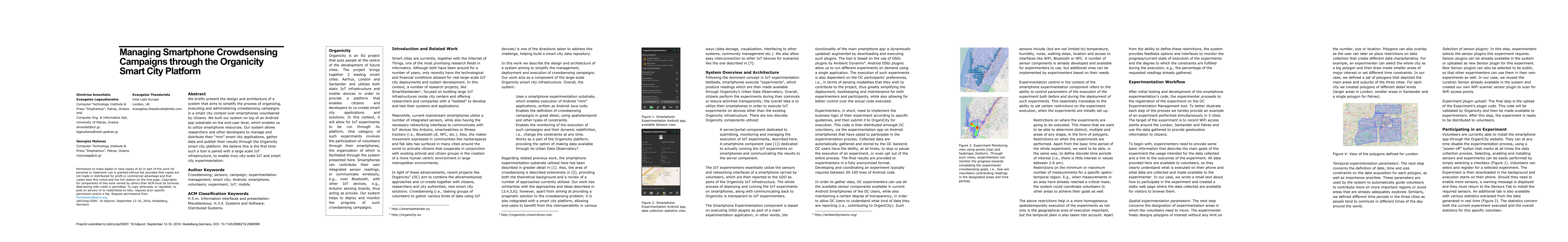 This paper introduces a system for managing crowdsensing campaigns via an Android app, simplifying organization and data collection in smart city contexts. The Organicity platform enables the distribution of mini smart city applications and data publication, marking a first in pairing such tools with large-scale IoT infrastructure.
