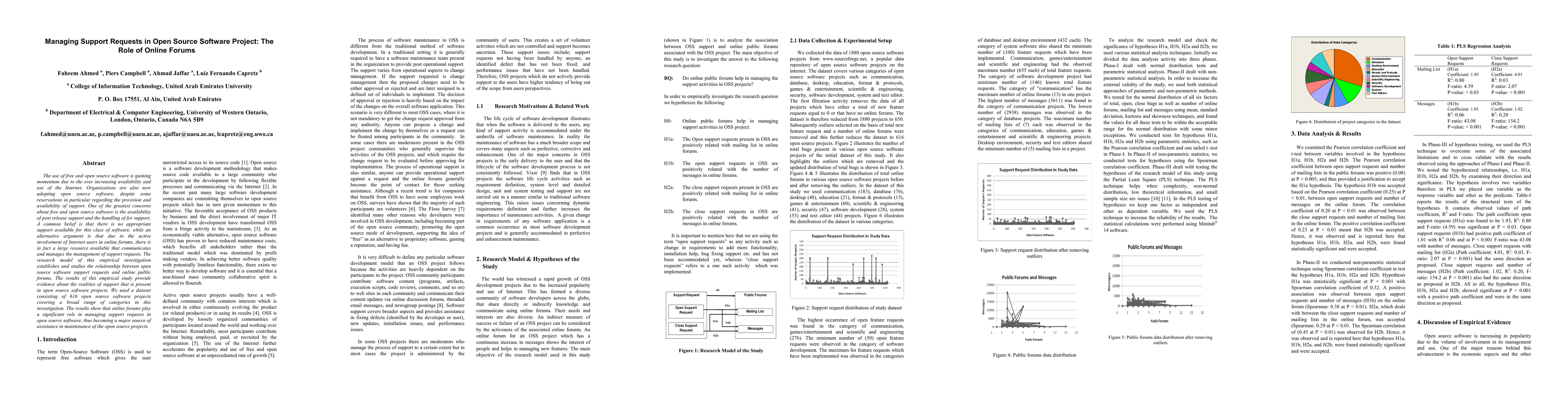 The use of free and open source software is gaining momentum due to the ever increasing availability and use of the Internet. Organizations are also now adopting open source software, despite some reservations in particular regarding the provision and availability of support. One of the greatest concerns about free and open source software is the availability of post release support and the handling of for support. A common belief is that there is no appropriate support available for this class of software, while an alternative argument is that due to the active involvement of Internet users in online forums, there is in fact a large resource available that communicates and manages the management of support requests. The research model of this empirical investigation establishes and studies the relationship between open source software support requests and online public forums. The results of this empirical study provide evidence about the realities of support that is present in open source software projects. We used a dataset consisting of 616 open source software projects covering a broad range of categories in this investigation. The results show that online forums play a significant role in managing support requests in open source software, thus becoming a major source of assistance in maintenance of the open source projects.