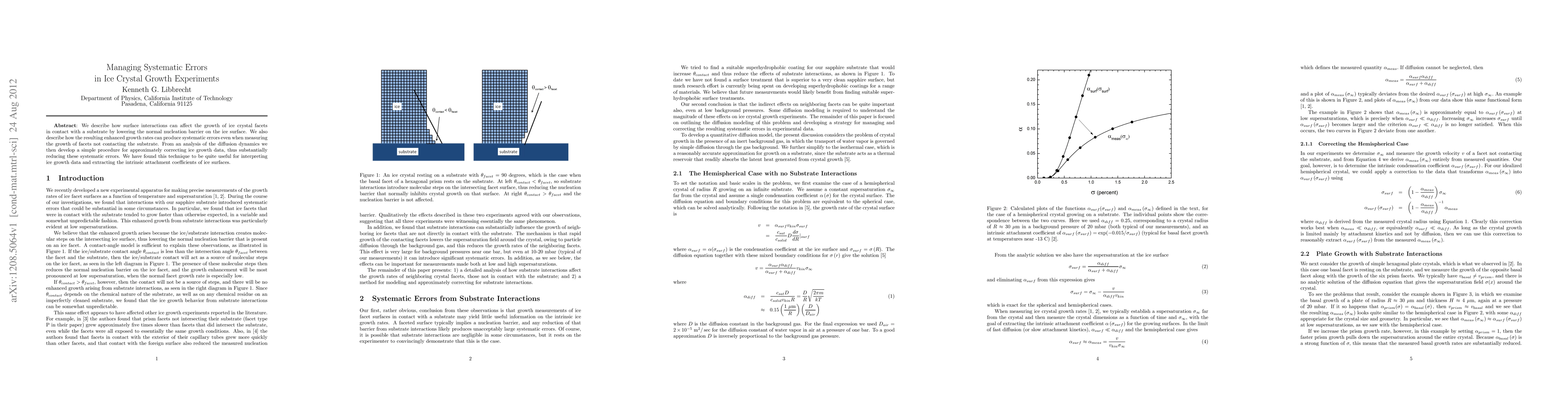 This paper discusses how surface interactions can lower the nucleation barrier in ice crystal growth experiments, leading to systematic errors. It proposes a correction procedure based on diffusion dynamics to mitigate these errors and improve the interpretation of ice growth data.