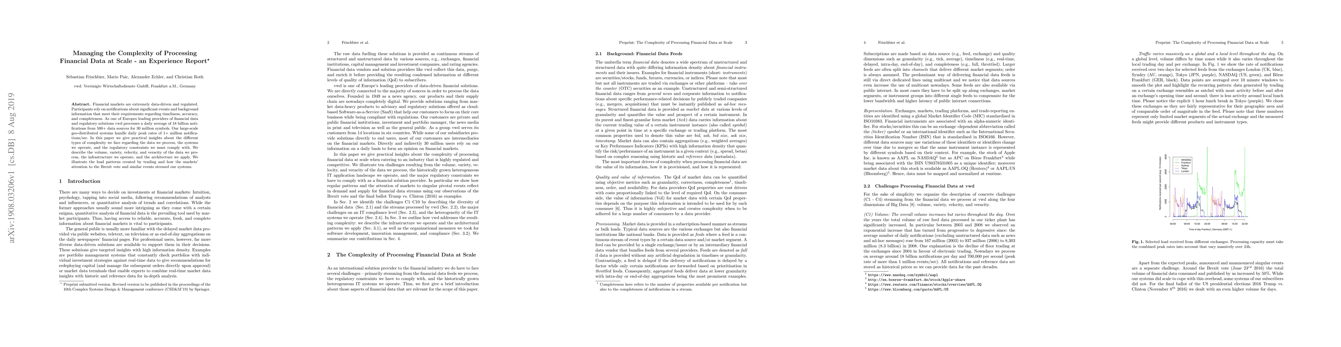 Financial markets are extremely data-driven and regulated. Participants rely on notifications about significant events and background information that meet their requirements regarding timeliness, accuracy, and completeness. As one of Europe's leading providers of financial data and regulatory solutions vwd processes a daily average of 18 billion notifications from 500+ data sources for 30 million symbols. Our large-scale geo-distributed systems handle daily peak rates of 1+ million notifications/sec. In this paper we give practical insights about the different types of complexity we face regarding the data we process, the systems we operate, and the regulatory constraints we must comply with. We describe the volume, variety, velocity, and veracity of the data we process, the infrastructure we operate, and the architecture we apply. We illustrate the load patterns created by trading and how the markets' attention to the Brexit vote and similar events stressed our systems.