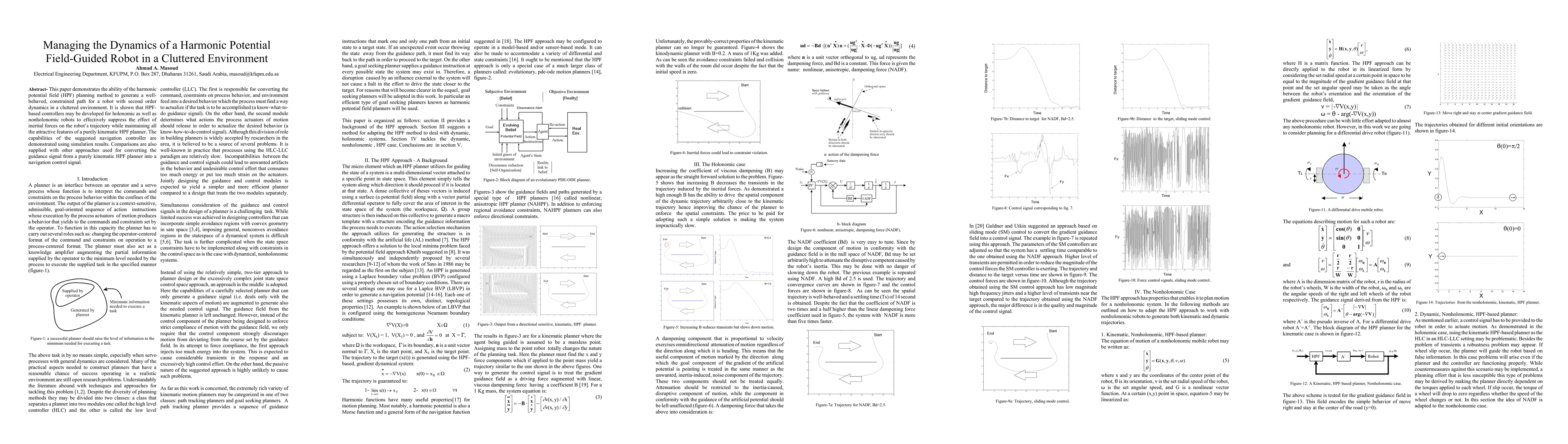 This paper presents a harmonic potential field (HPF) planning method for guiding robots through cluttered environments, demonstrating its effectiveness for both holonomic and nonholonomic robots. Simulation results show the HPF-based controller's ability to manage inertial forces while maintaining kinematic HPF planner benefits.