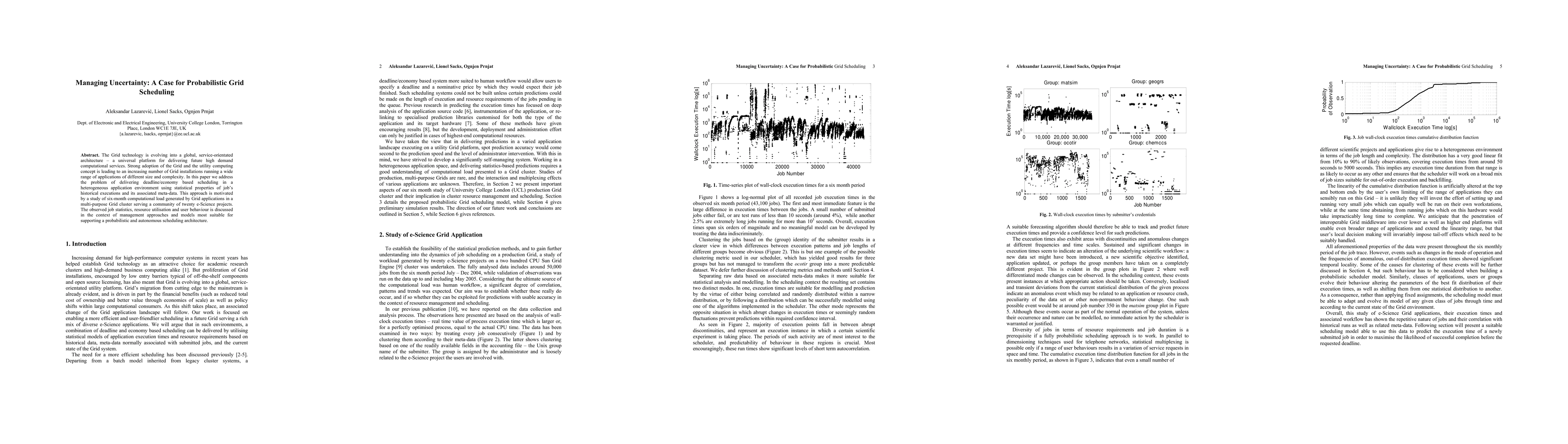 This paper explores probabilistic scheduling for Grid computing to manage uncertainty in delivering deadline/economy-based services in a heterogeneous environment. It uses historical job execution data and meta-data from a multi-purpose Grid cluster serving e-Science projects to propose a probabilistic and autonomous scheduling model.