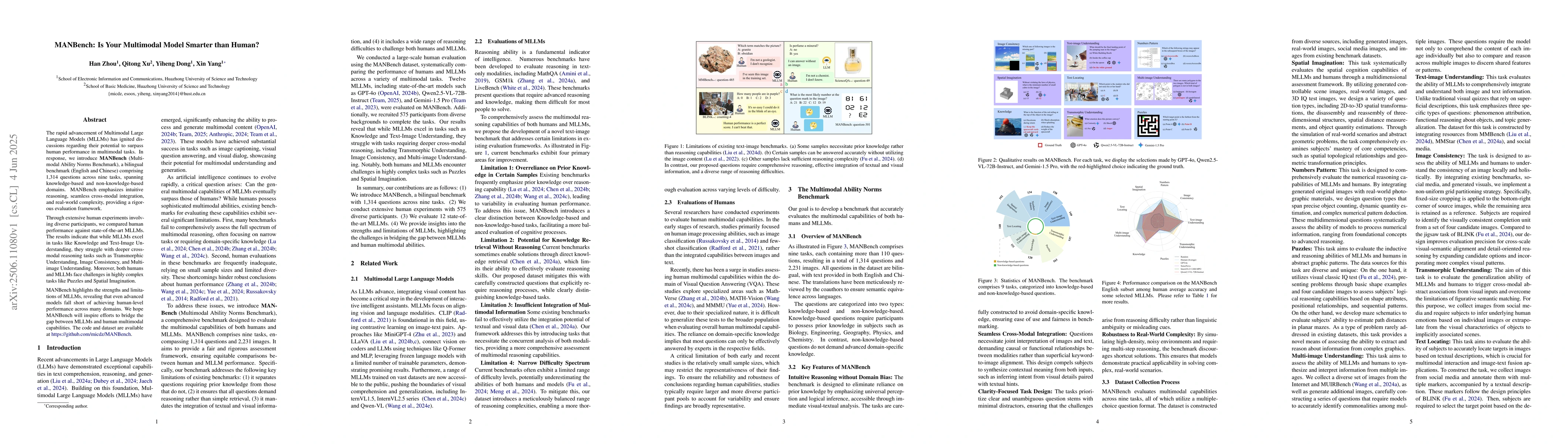The rapid advancement of Multimodal Large Language Models (MLLMs) has ignited discussions regarding their potential to surpass human performance in multimodal tasks. In response, we introduce MANBench (Multimodal Ability Norms Benchmark), a bilingual benchmark (English and Chinese) comprising 1,314 questions across nine tasks, spanning knowledge-based and non-knowledge-based domains. MANBench emphasizes intuitive reasoning, seamless cross-modal integration, and real-world complexity, providing a rigorous evaluation framework. Through extensive human experiments involving diverse participants, we compared human performance against state-of-the-art MLLMs. The results indicate that while MLLMs excel in tasks like Knowledge and Text-Image Understanding, they struggle with deeper cross-modal reasoning tasks such as Transmorphic Understanding, Image Consistency, and Multi-image Understanding. Moreover, both humans and MLLMs face challenges in highly complex tasks like Puzzles and Spatial Imagination. MANBench highlights the strengths and limitations of MLLMs, revealing that even advanced models fall short of achieving human-level performance across many domains. We hope MANBench will inspire efforts to bridge the gap between MLLMs and human multimodal capabilities. The code and dataset are available at https://github.com/micdz/MANBench.