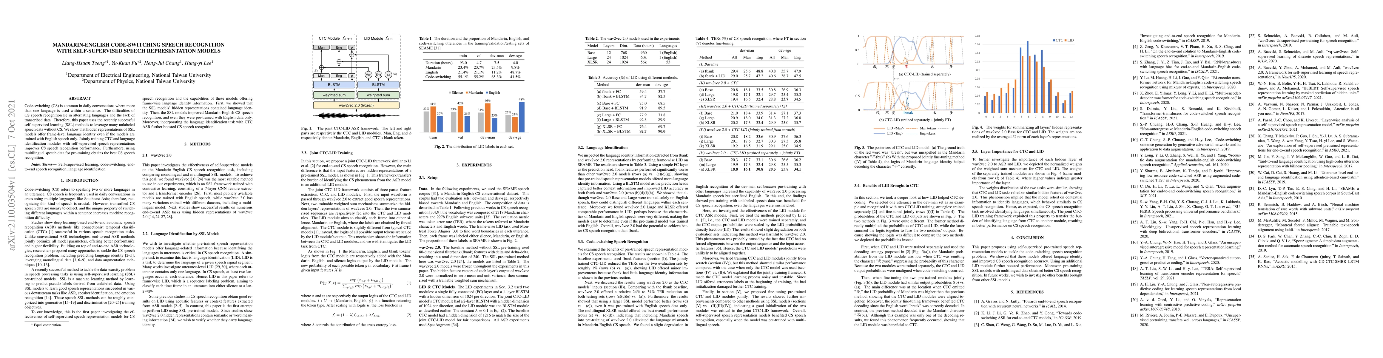 This paper explores Mandarin-English code-switching speech recognition using self-supervised learning models, demonstrating that these models can infer language identity from unlabeled speech data. Joint training with CTC and language identification modules enhances recognition performance, with multilingual pre-training yielding the best results.