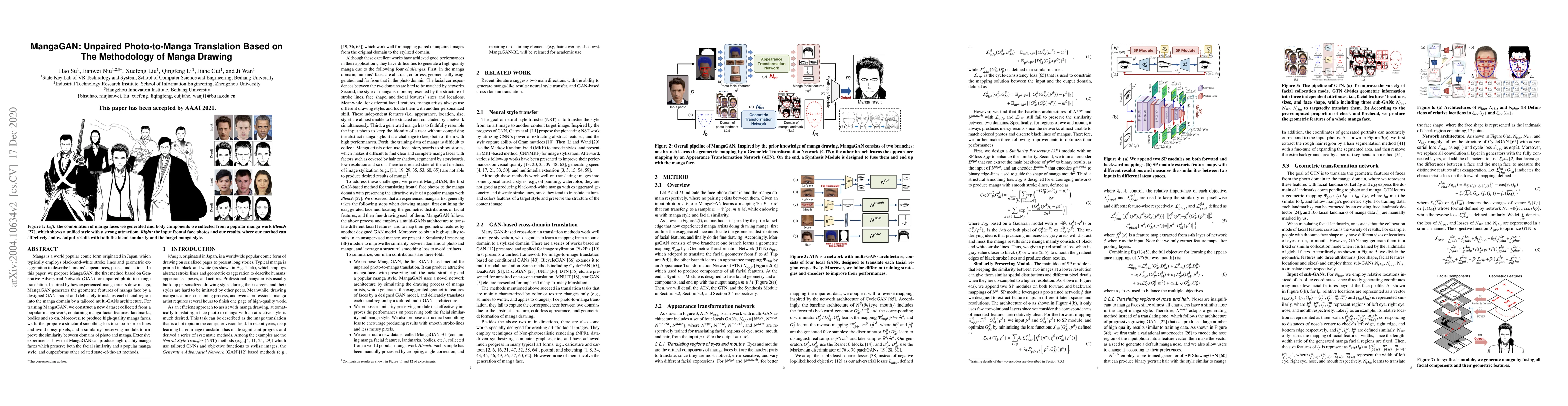 Manga is a world popular comic form originated in Japan, which typically employs black-and-white stroke lines and geometric exaggeration to describe humans' appearances, poses, and actions. In this paper, we propose MangaGAN, the first method based on Generative Adversarial Network (GAN) for unpaired photo-to-manga translation. Inspired by how experienced manga artists draw manga, MangaGAN generates the geometric features of manga face by a designed GAN model and delicately translates each facial region into the manga domain by a tailored multi-GANs architecture. For training MangaGAN, we construct a new dataset collected from a popular manga work, containing manga facial features, landmarks, bodies, and so on. Moreover, to produce high-quality manga faces, we further propose a structural smoothing loss to smooth stroke-lines and avoid noisy pixels, and a similarity preserving module to improve the similarity between domains of photo and manga. Extensive experiments show that MangaGAN can produce high-quality manga faces which preserve both the facial similarity and a popular manga style, and outperforms other related state-of-the-art methods.