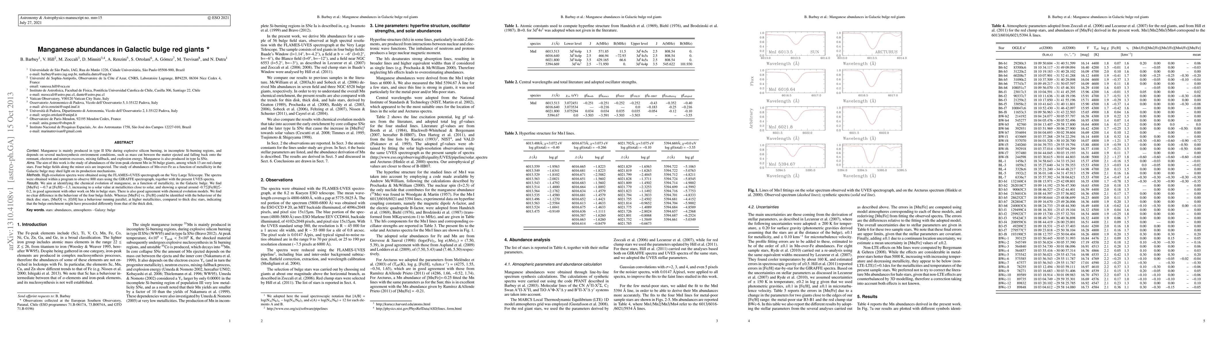 This study investigates manganese abundances in 56 Galactic bulge red giants, revealing a trend of [Mn/Fe] increasing from -0.7 to solar values with rising metallicity. The findings suggest distinct enrichment processes in the Galactic bulge compared to the thick disc.