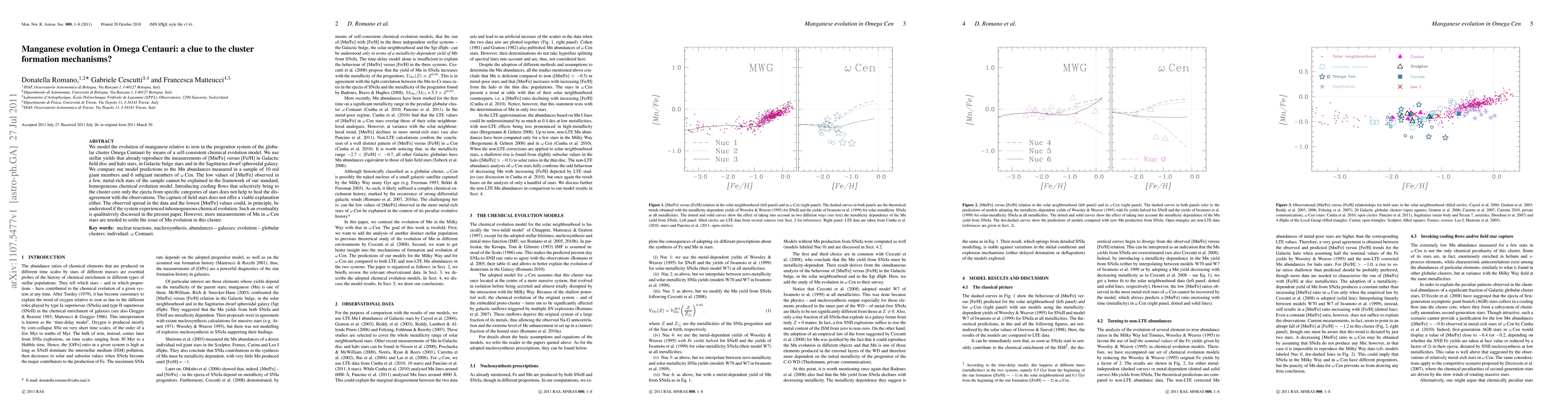 This paper models the manganese-to-iron evolution in Omega Centauri, finding that low [Mn/Fe] values in metal-rich stars cannot be explained by standard homogeneous chemical evolution models. Inhomogeneous chemical evolution is suggested as a possible explanation, but more manganese measurements in Omega Centauri stars are needed to confirm this.