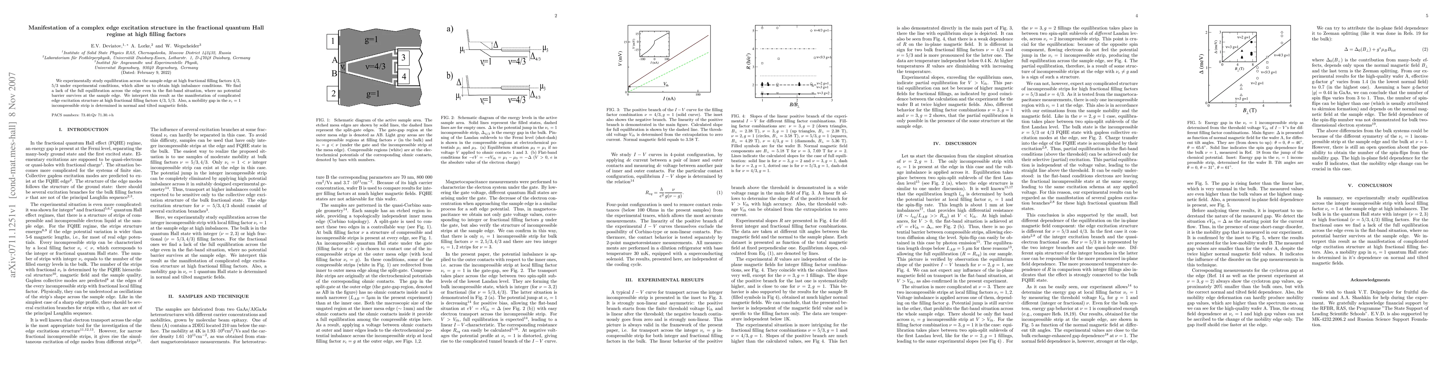 We experimentally study equilibration across the sample edge at high fractional filling factors 4/3, 5/3 under experimental conditions, which allow us to obtain high imbalance conditions. We find a lack of the full equilibration across the edge even in the flat-band situation, where no potential barrier survives at the sample edge. We interpret this result as the manifestation of complicated edge excitation structure at high fractional filling factors 4/3, 5/3. Also, a mobility gap in the $\nu_c=1$ incompressible strip is determined in normal and tilted magnetic fields.