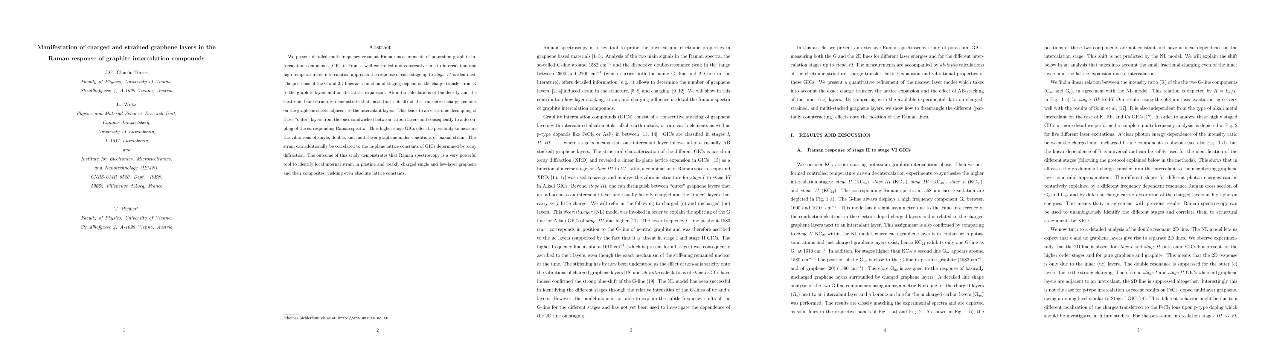 This study uses multi-frequency resonant Raman spectroscopy to analyze potassium graphite intercalation compounds, revealing how charge transfer affects the Raman response of graphene layers. The findings show that higher stage GICs enable the measurement of vibrations in strained graphene layers, providing insights into local internal strain and lattice constants.
