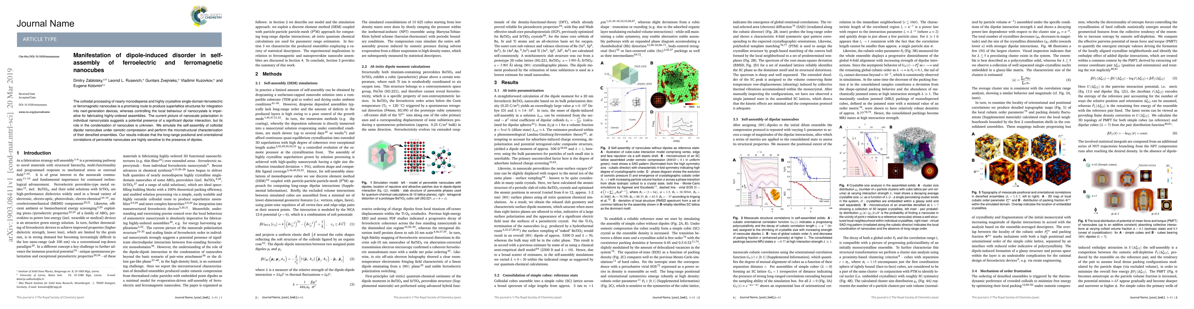 The colloidal processing of nearly monodisperse and highly crystalline single-domain ferroelectric or ferromagnetic nanocubes is a promising route to produce superlattice structures for integration into next-generation devices, whereas controlling the local behaviour of nanocrystals is imperative for fabricating highly-ordered assemblies. The current picture of nanoscale polarization in individual nanocrystals suggests a potential presence of a significant dipolar interaction, but its role in the condensation of nanocubes is unknown. We simulate the self-assembly of colloidal dipolar nanocubes under osmotic compression and perform the microstructural characterization of their densified ensembles. Our results indicate that the long-range positional and orientational correlations of perovskite nanocubes are highly sensitive to the presence of dipoles.