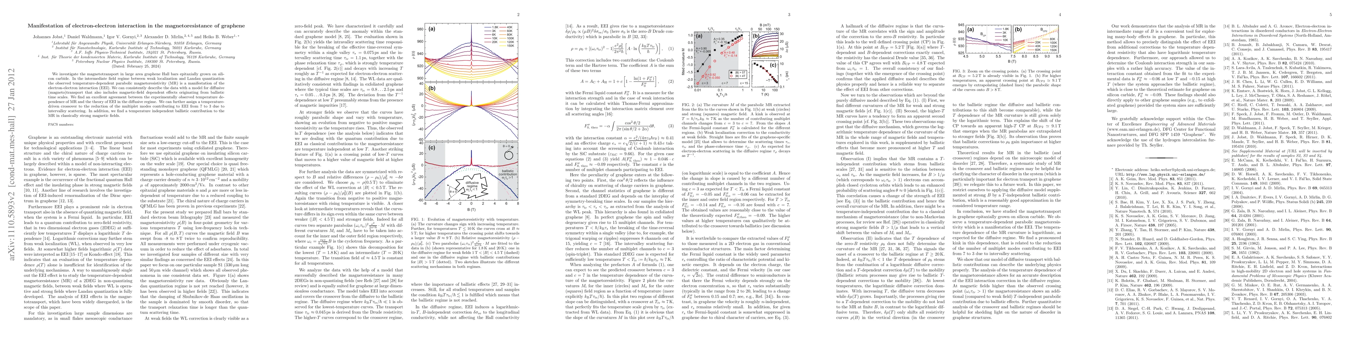 We investigate the magnetotransport in large area graphene Hall bars epitaxially grown on silicon carbide. In the intermediate field regime between weak localization and Landau quantization the observed temperature-dependent parabolic magnetoresistivity (MR) is a manifestation of the electron-electron interaction (EEI). We can consistently describe the data with a model for diffusive (magneto)transport that also includes magnetic-field dependent effects originating from ballistic time scales. We find an excellent agreement between the experimentally observed temperature dependence of MR and the theory of EEI in the diffusive regime. We can further assign a temperature-driven crossover to the reduction of the multiplet modes contributing to EEI from 7 to 3 due to intervalley scattering. In addition, we find a temperature independent ballistic contribution to the MR in classically strong magnetic fields.