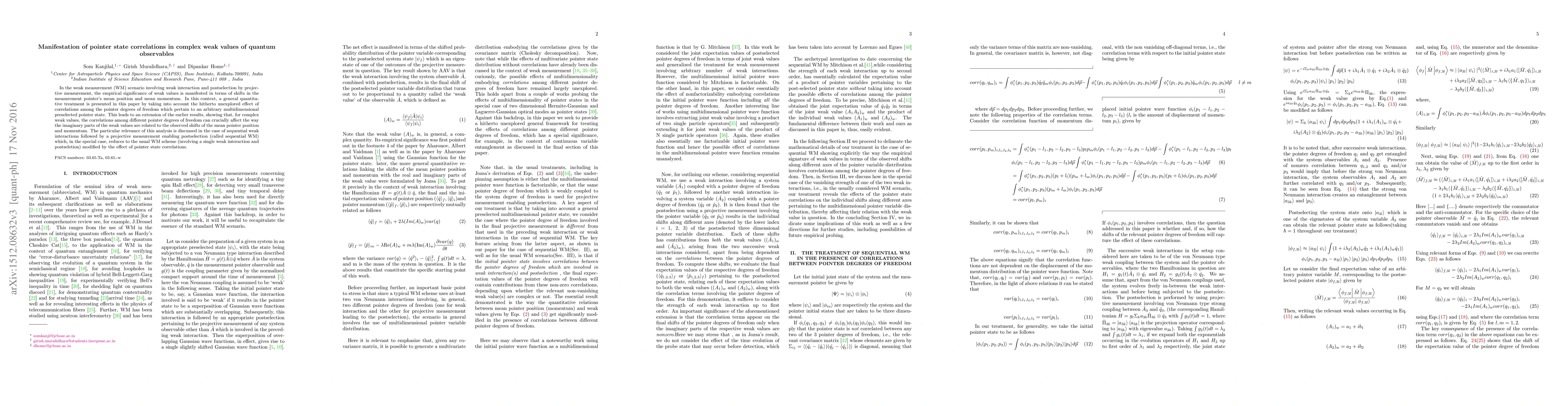 Research explores how correlations among quantum pointer degrees of freedom affect weak values in complex measurements, leading to shifts in pointer position and momentum. This work extends earlier findings on weak measurement theory, with implications for sequential weak interactions and postselection processes.