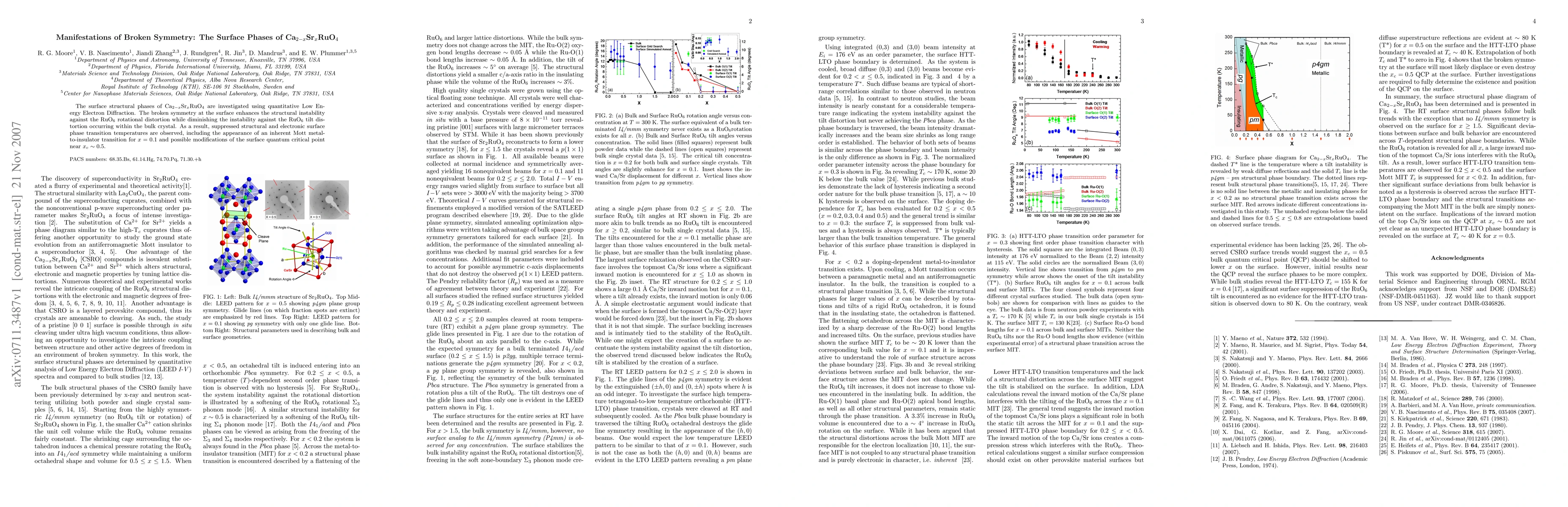 The surface structural phases of Ca(2-x)Sr(x)RuO(4) are investigated using quantitative Low Energy Electron Diffraction. The broken symmetry at the surface enhances the structural instability against the RuO6 rotational distortion while diminishing the instability against the RuO6 tilt distortion occurring within the bulk crystal. As a result, suppressed structural and electronic surface phase transition temperatures are observed, including the appearance of an inherent Mott metal-to-insulator transition for x = 0.1 and possible modifications of the surface quantum critical point near xc ~ 0.5.