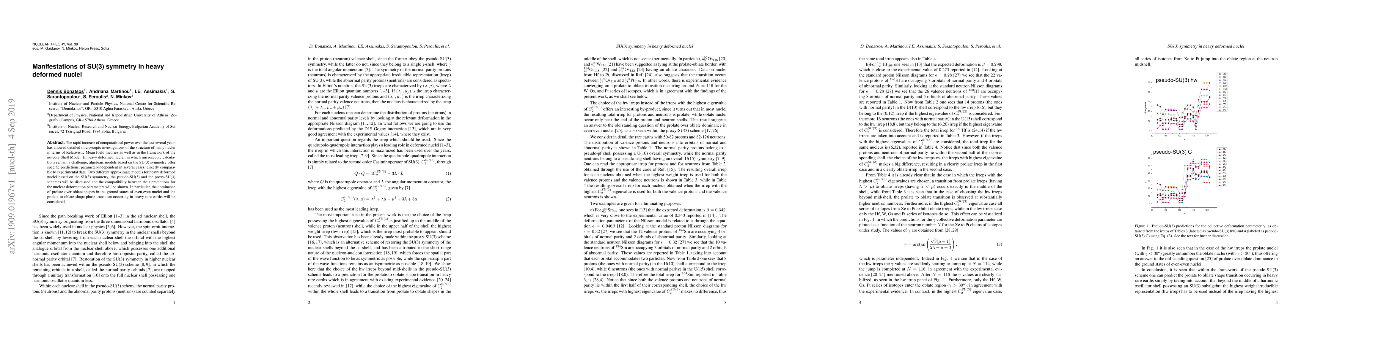 The rapid increase of computational power over the last several years has allowed detailed microscopic investigations of the structure of many nuclei in terms of Relativistic Mean Field theories as well as in the framework of the no-core Shell Model. In heavy deformed nuclei, in which microscopic calculations remain a challenge, algebraic models based on the SU(3) symmetry offer specific predictions, parameter-independent in several cases, directly comparable to experimental data. Two different approximate models for heavy deformed nuclei based on the SU(3) symmetry, the pseudo-SU(3) and the proxy-SU(3) schemes will be discussed and the compatibility between their predictions for the nuclear deformation parameters will be shown. In particular, the dominance of prolate over oblate shapes in the ground states of even-even nuclei and the prolate to oblate shape phase transition occurring in heavy rare earths will be considered.