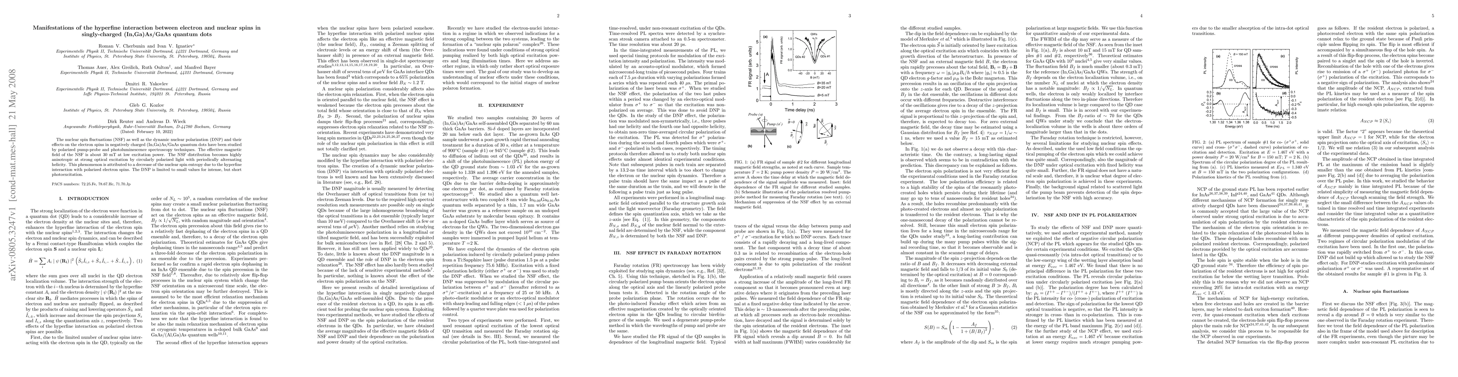 This study investigates the hyperfine interaction between electron and nuclear spins in singly-charged (In,Ga)As/GaAs quantum dots using polarized pump-probe and photoluminescence spectroscopy. The study finds that nuclear spin fluctuations and dynamic nuclear polarization are influenced by the hyperfine interaction, with an effective magnetic field of about 30 mT, and become highly anisotropic under strong optical excitation.