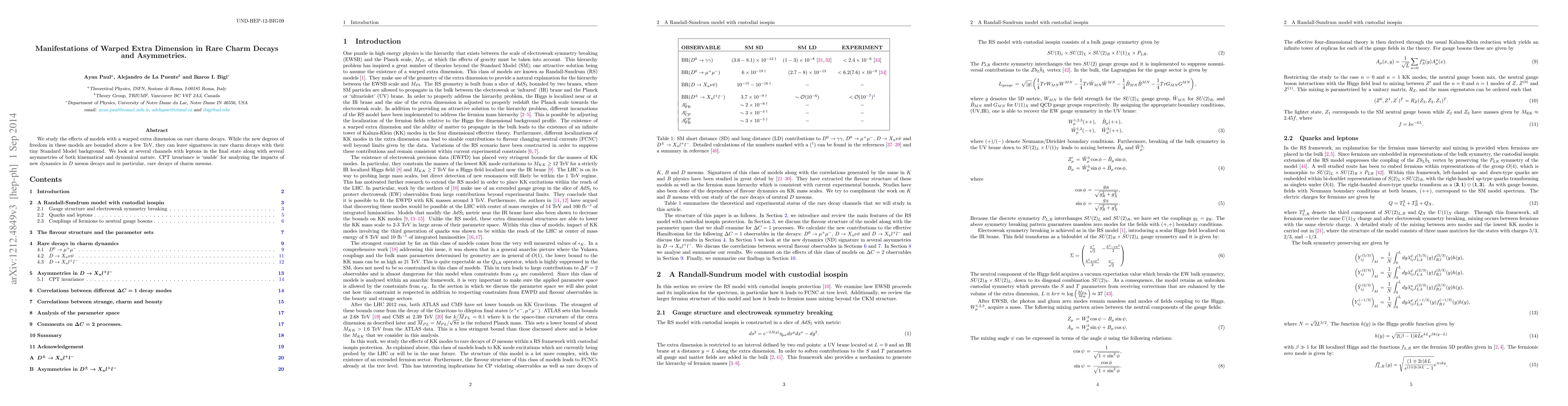This paper investigates the potential signatures of warped extra dimension models in rare charm decays, focusing on channels with leptons and various asymmetries. The study leverages CPT invariance to analyze the impacts of new physics, despite the tiny Standard Model background.
