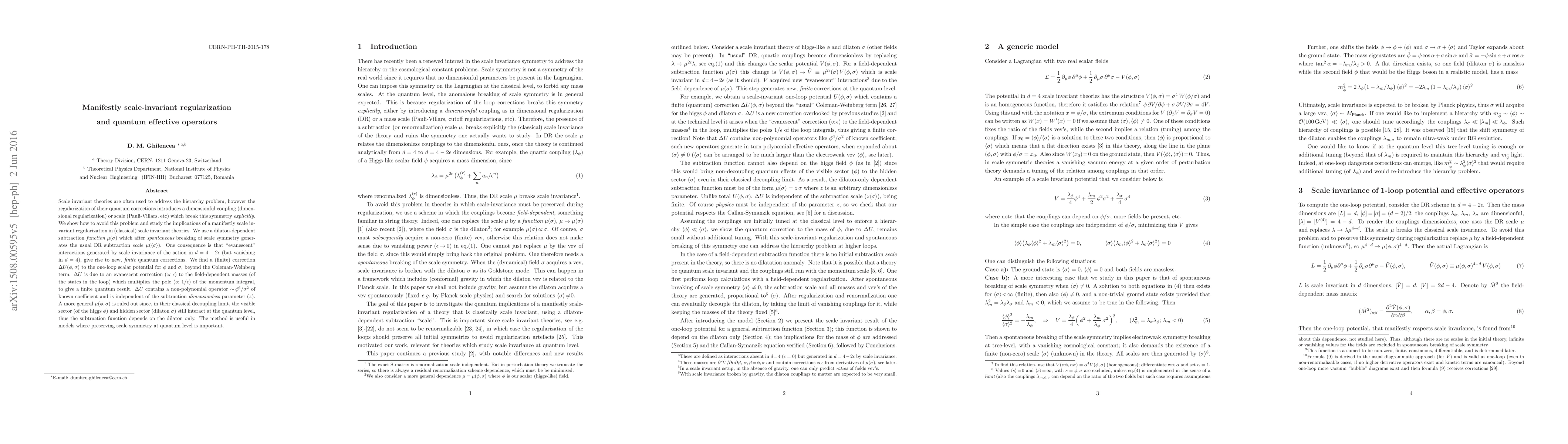 This paper proposes a manifestly scale-invariant regularization method to avoid breaking scale symmetry in quantum corrections, using a dilaton-dependent subtraction function. It finds finite quantum corrections beyond the Coleman-Weinberg term, including a non-polynomial operator, and emphasizes the importance of preserving scale symmetry in quantum level models.
