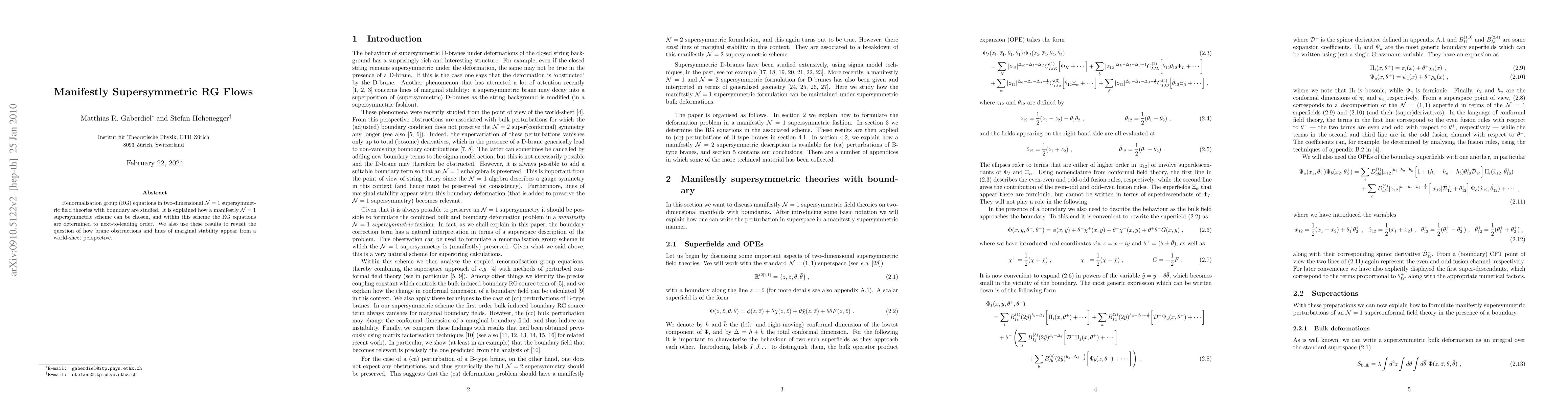 Renormalisation group (RG) equations in two-dimensional N=1 supersymmetric field theories with boundary are studied. It is explained how a manifestly N=1 supersymmetric scheme can be chosen, and within this scheme the RG equations are determined to next-to-leading order. We also use these results to revisit the question of how brane obstructions and lines of marginal stability appear from a world-sheet perspective.