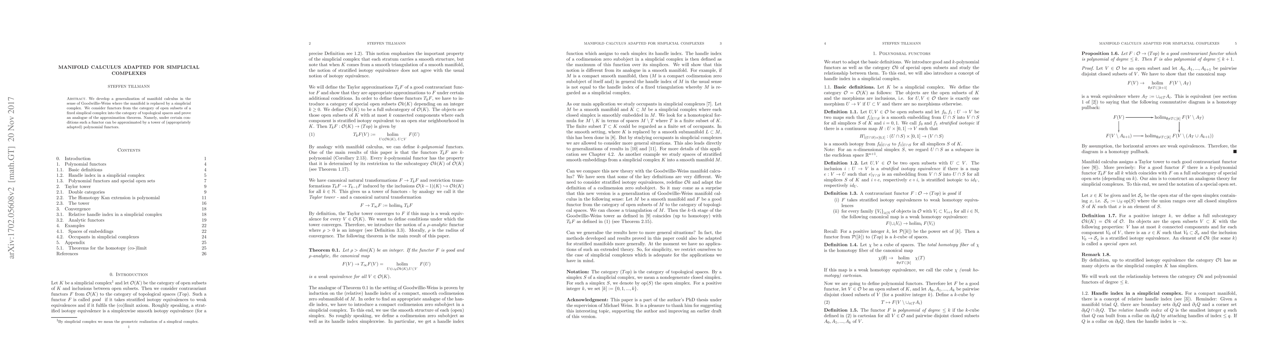 This paper generalizes manifold calculus to simplicial complexes, showing that functors from open subsets of a simplicial complex to topological spaces can be approximated by towers of polynomial functors under specific conditions. The authors establish an analogue of the approximation theorem for this new setting.
