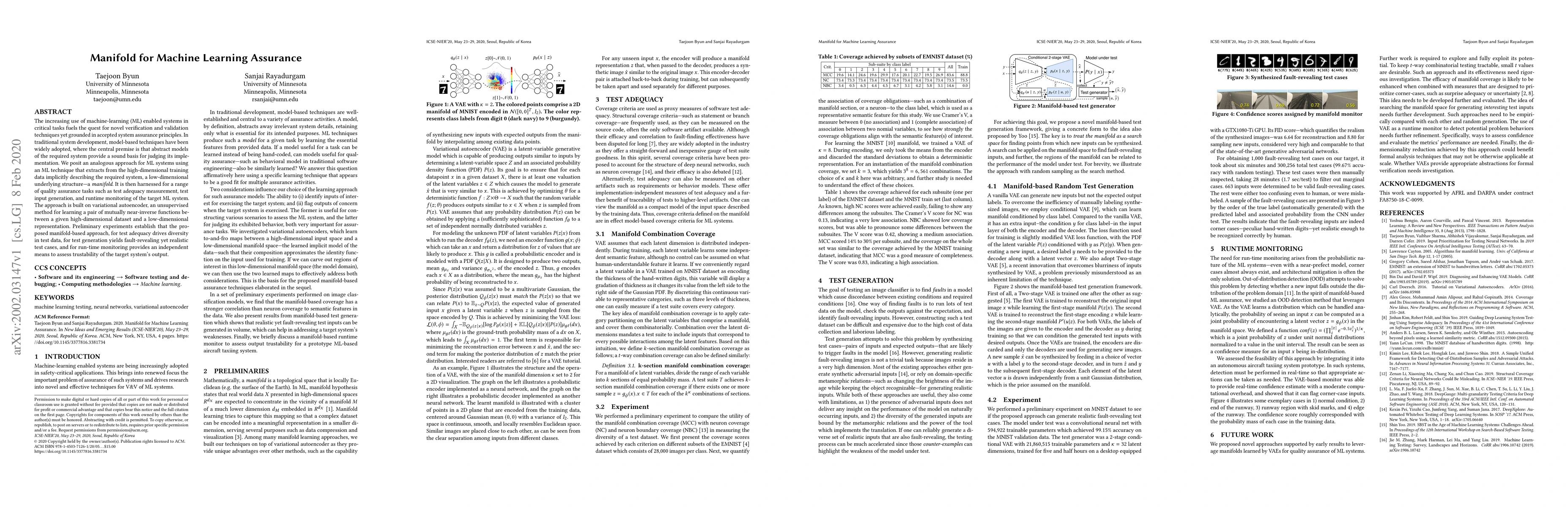 Researchers propose using a manifold, derived from machine learning data, to ensure the quality of AI systems through test adequacy, test generation, and runtime monitoring. Preliminary experiments show promising results in driving diversity in tests, generating realistic fault-revealing test cases, and assessing trustability.