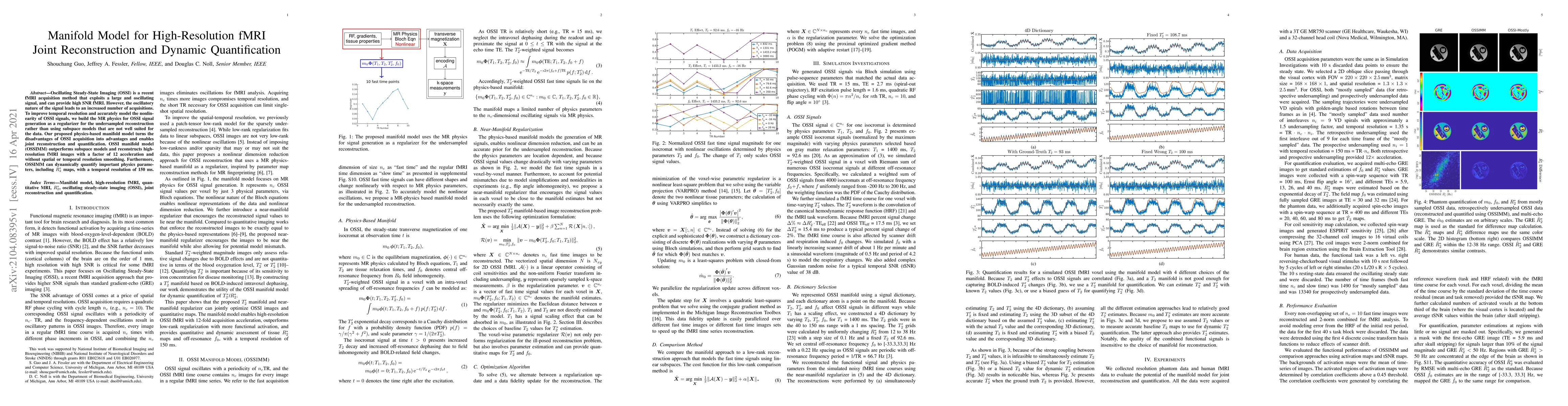 Oscillating Steady-State Imaging (OSSI) is a recent fMRI acquisition method that exploits a large and oscillating signal, and can provide high SNR fMRI. However, the oscillatory nature of the signal leads to an increased number of acquisitions. To improve temporal resolution and accurately model the nonlinearity of OSSI signals, we build the MR physics for OSSI signal generation as a regularizer for the undersampled reconstruction rather than using subspace models that are not well suited for the data. Our proposed physics-based manifold model turns the disadvantages of OSSI acquisition into advantages and enables joint reconstruction and quantification. OSSI manifold model (OSSIMM) outperforms subspace models and reconstructs high-resolution fMRI images with a factor of 12 acceleration and without spatial or temporal resolution smoothing. Furthermore, OSSIMM can dynamically quantify important physics parameters, including $R_2^*$ maps, with a temporal resolution of 150 ms.
