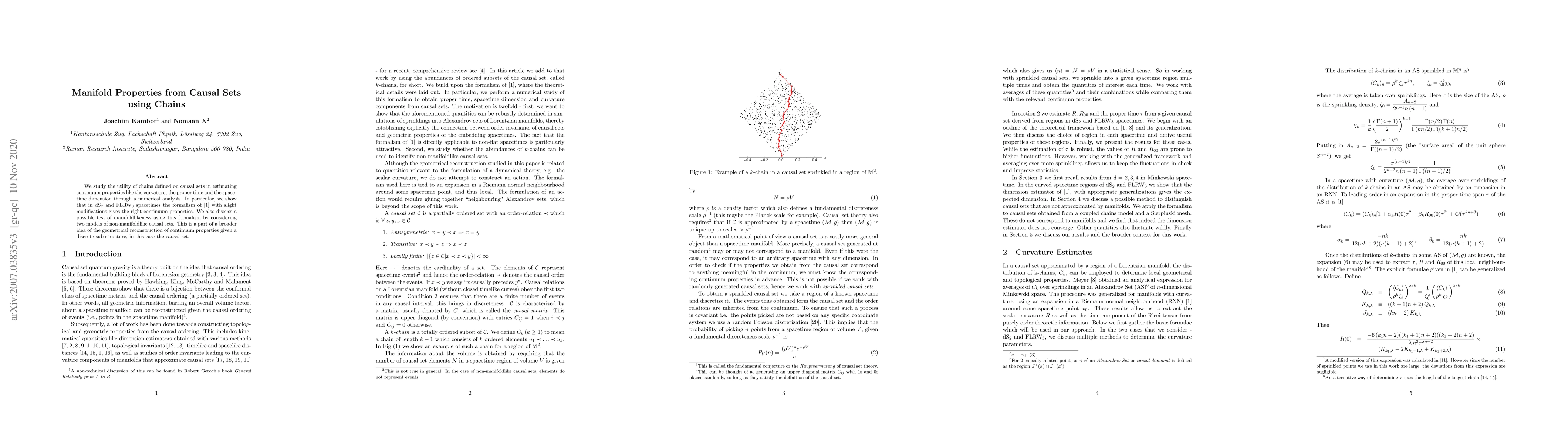 We study the utility of chains defined on causal sets in estimating continuum properties like the curvature, the proper time and the spacetime dimension through a numerical analysis. In particular, we show that in $\text{dS}_2$ and $\text{FLRW}_3$ spacetimes the formalism of arXiv:1212.0631 with slight modifications gives the right continuum properties. We also discuss a possible test of manifoldlikeness using this formalism by considering two models of non-manifoldlike causal sets. This is a part of a broader idea of the geometrical reconstruction of continuum properties given a discrete sub structure, in this case the causal set.