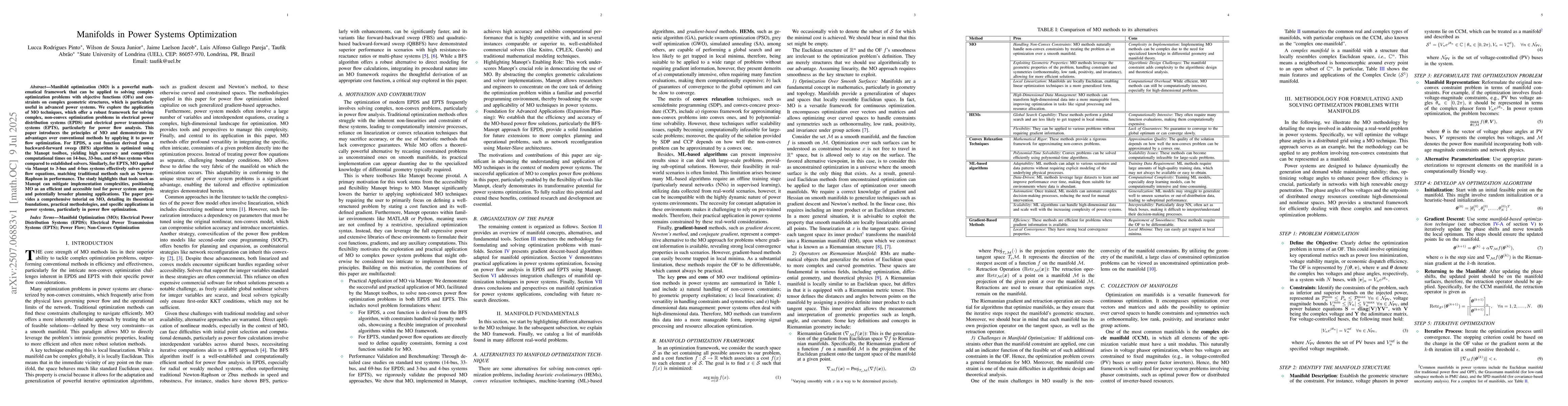 This work introduces a new paradigm for addressing complex challenges in power systems optimization by leveraging the properties of smooth manifolds and computational optimization techniques.