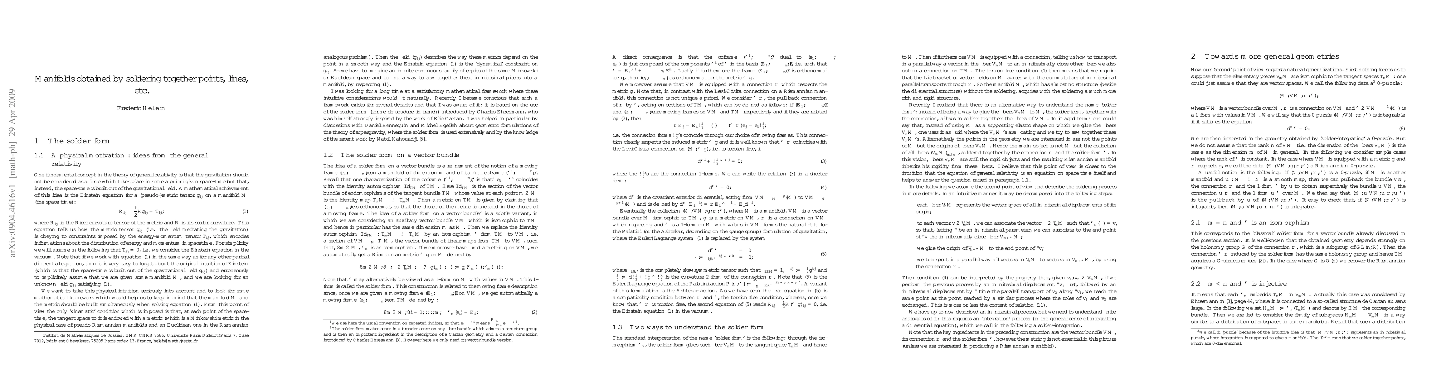 This text is the extended version of a talk given at the conference Geometry, Topology, QFT and Cosmology hold from May 28 to May 30, 2008 at the Observatoire de Paris. We explore the notion of solder (or soldering form) in differential geometry and propose an alternative interpretation of it, motivated by the search of an accurate mathematical description of the General Relativity. This new interpretation leads naturally to imagine a rich family of new geometries which has not yet a satisfactory definition in general. We try however to communicate to the reader an intuition of such geometries through some examples and review quickly some possible applications in physics. The basic objects in this geometry are not points (i.e. 0-dimensional), but (p-1)-dimensional.