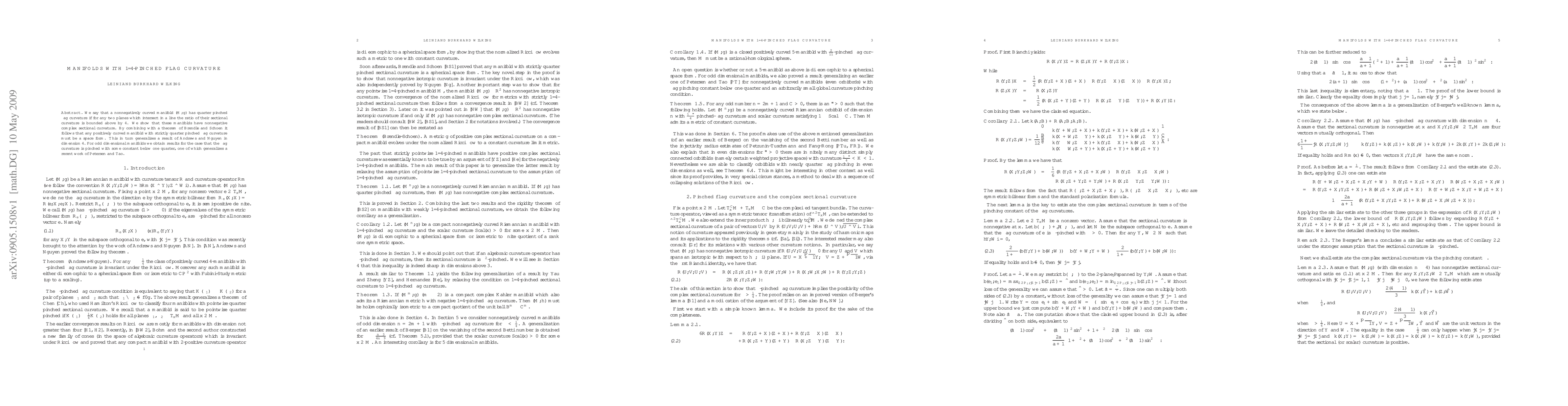 We say that a nonnegatively curved manifold $(M,g)$ has quarter pinched flag curvature if for any two planes which intersect in a line the ratio of their sectional curvature is bounded above by 4. We show that these manifolds have nonnegative complex sectional curvature. By combining with a theorem of Brendle and Schoen it follows that any positively curved manifold with strictly quarter pinched flag curvature must be a space form. This in turn generalizes a result of Andrews and Nguyen in dimension 4. For odd dimensional manifolds we obtain results for the case that the flag curvature is pinched with some constant below one quarter, one of which generalizes a recent work of Petersen and Tao.