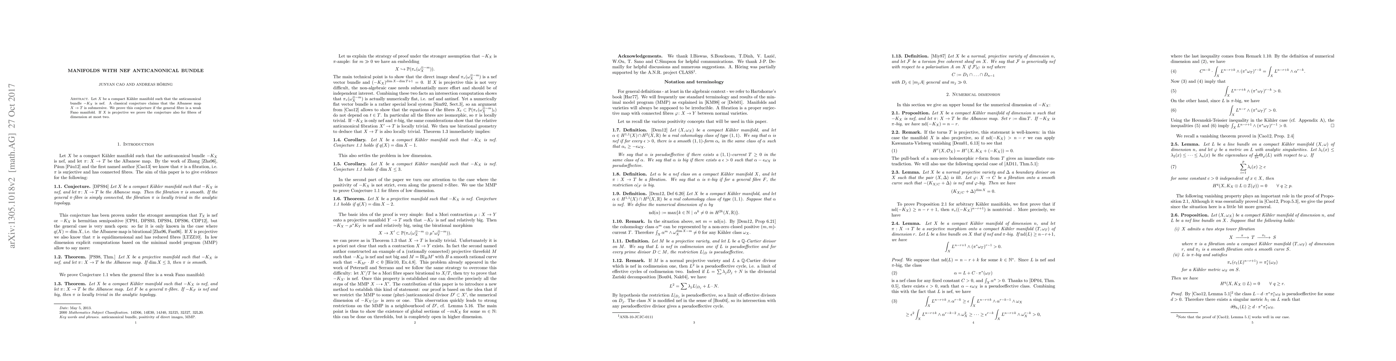 This paper proves a conjecture about the submersiveness of the Albanese map for compact Kähler manifolds with nef anticanonical bundles, specifically showing it holds when the general fiber is a weak Fano manifold or when the fiber dimension is at most two for projective manifolds.