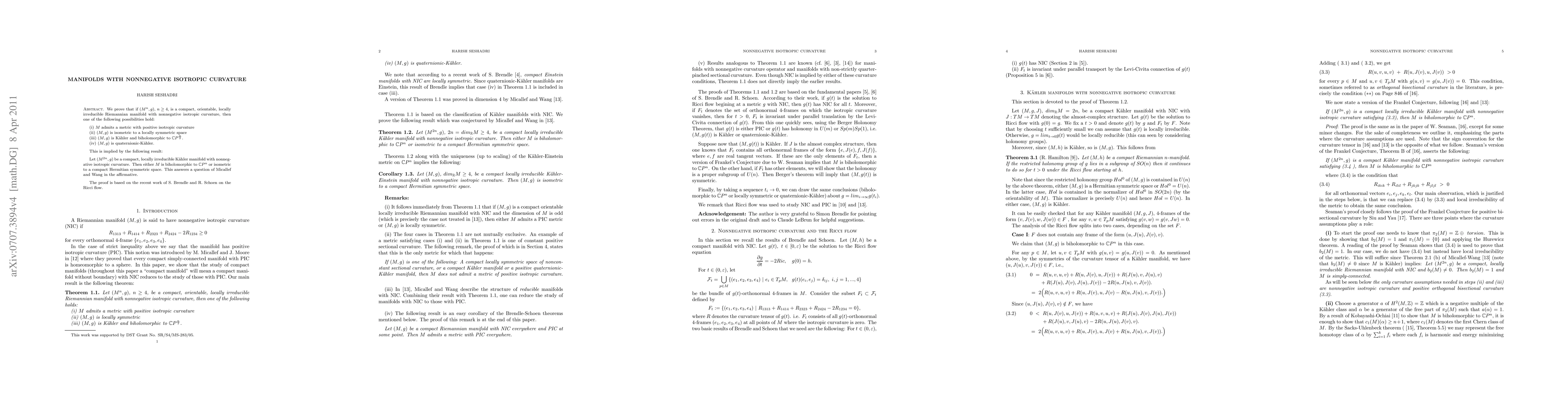 This paper proves that compact, orientable Riemannian manifolds with nonnegative isotropic curvature fall into four categories: those with positive isotropic curvature, those isometric to locally symmetric spaces, Kähler manifolds biholomorphic to $\mathbb{C}P^{n/2}$, and quaternionic-Kähler manifolds. The proof leverages recent advancements in Ricci flow techniques.