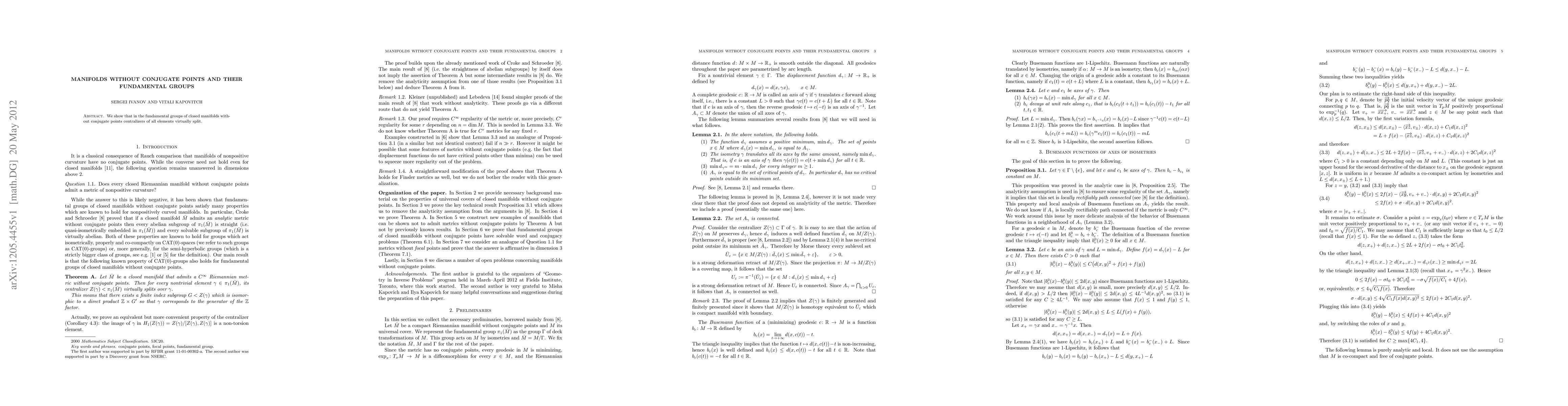 Summary: The paper demonstrates that closed manifolds devoid of conjugate points have fundamental groups where the centralizers of all elements virtually decompose into simpler subgroups. This property highlights a significant structural feature of the groups associated with such manifolds.