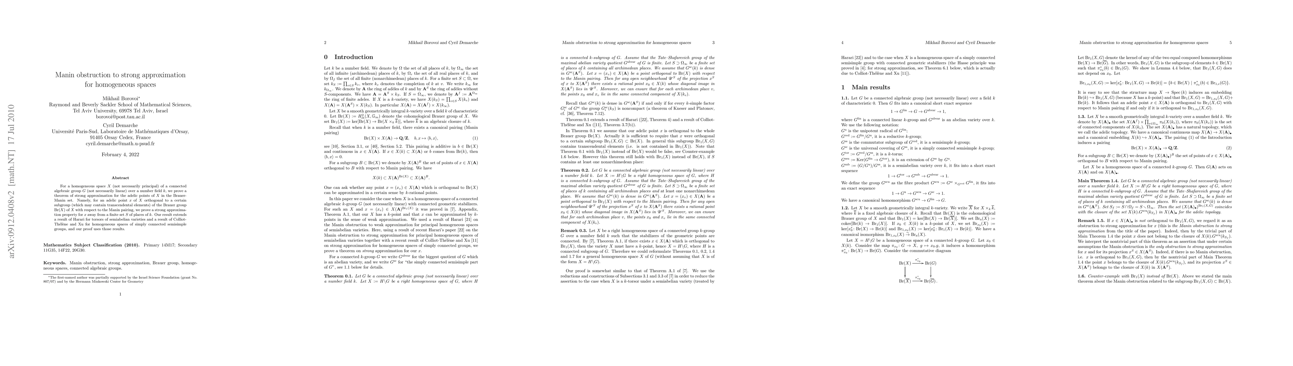 This paper proves a strong approximation theorem for adelic points of homogeneous spaces over number fields, orthogonal to a certain subgroup of the Brauer group, extending previous results for torsors and semisimple groups. The proof leverages earlier findings in the field.