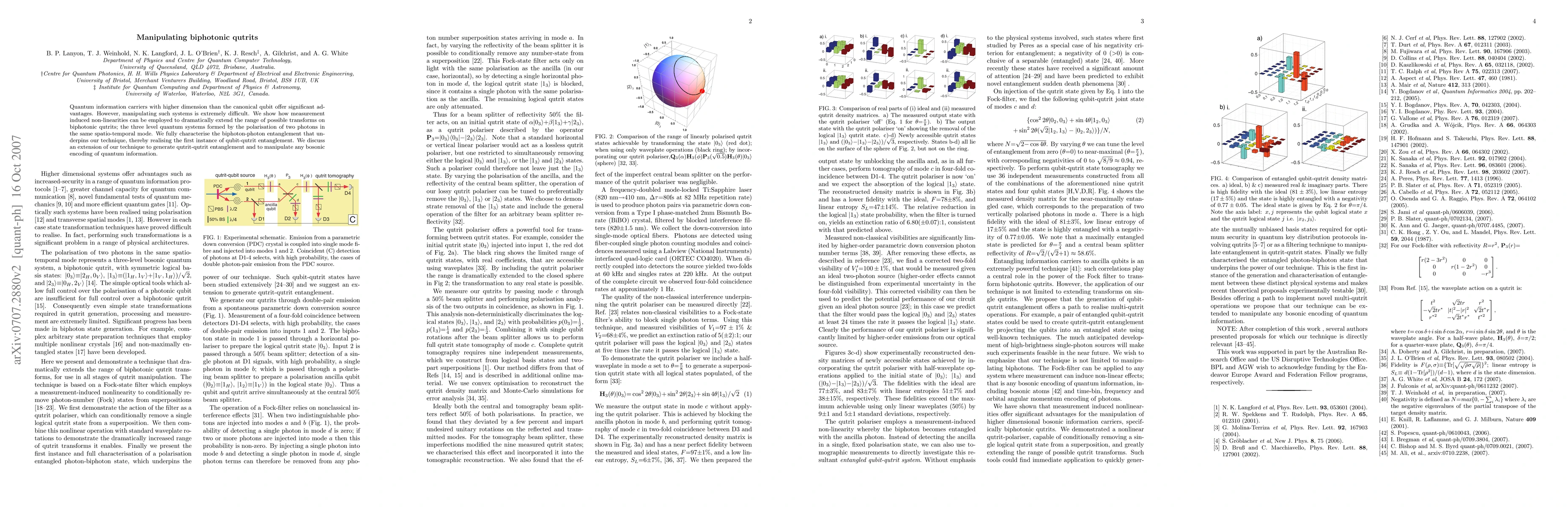 Quantum information carriers with higher dimension than the canonical qubit offer significant advantages. However, manipulating such systems is extremely difficult. We show how measurement induced non-linearities can be employed to dramatically extend the range of possible transforms on biphotonic qutrits; the three level quantum systems formed by the polarisation of two photons in the same spatio-temporal mode. We fully characterise the biphoton-photon entanglement that underpins our technique, thereby realising the first instance of qubit-qutrit entanglement. We discuss an extension of our technique to generate qutrit-qutrit entanglement and to manipulate any bosonic encoding of quantum information.