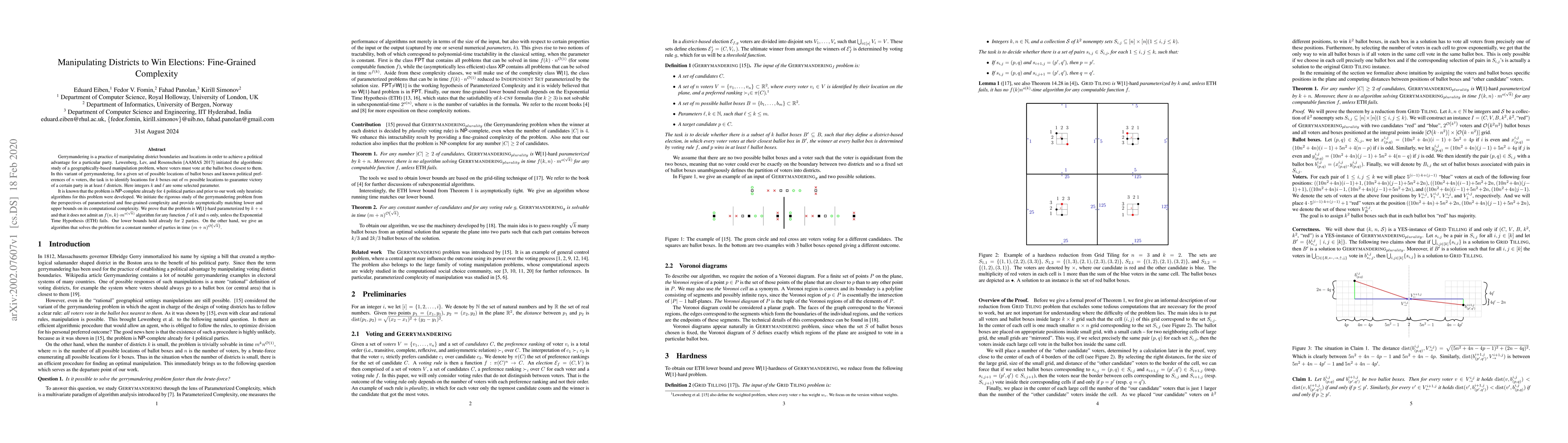 Researchers study gerrymandering, a practice of manipulating district boundaries to gain political advantage, and establish lower and upper bounds for its computational complexity, shedding light on its fine-grained complexity.