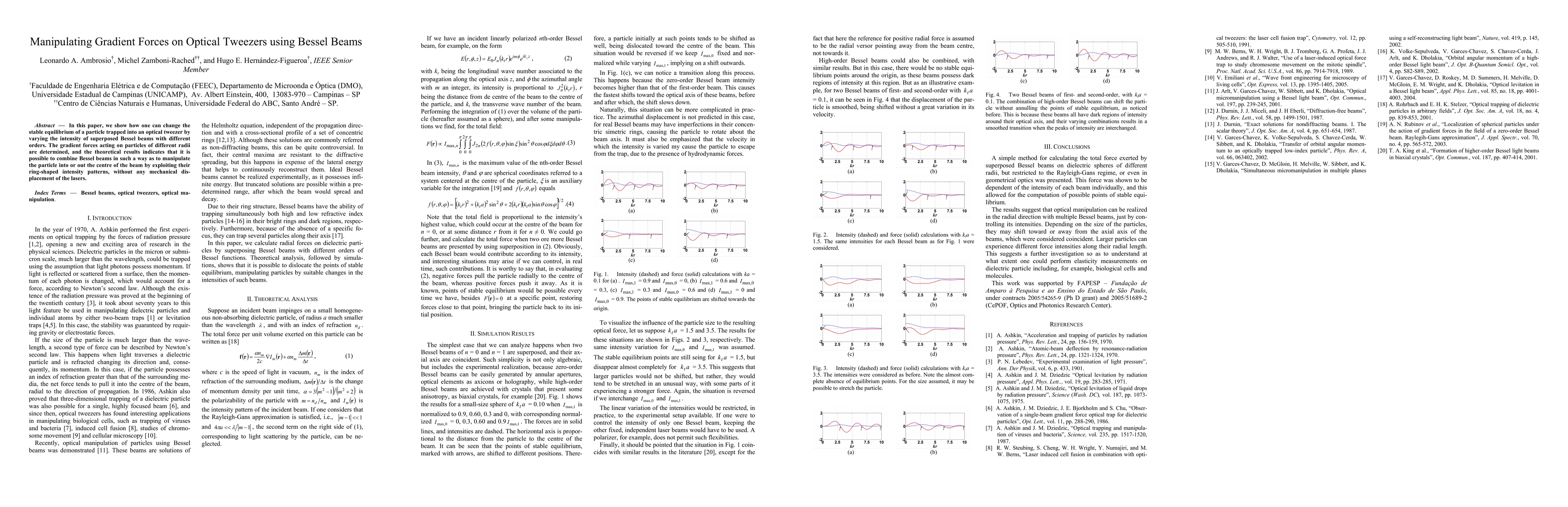 Researchers demonstrate manipulation of particles trapped in optical tweezers using Bessel beams with varying intensities, exploiting ring-shaped intensity patterns to move particles in or out of the center without mechanical displacement.