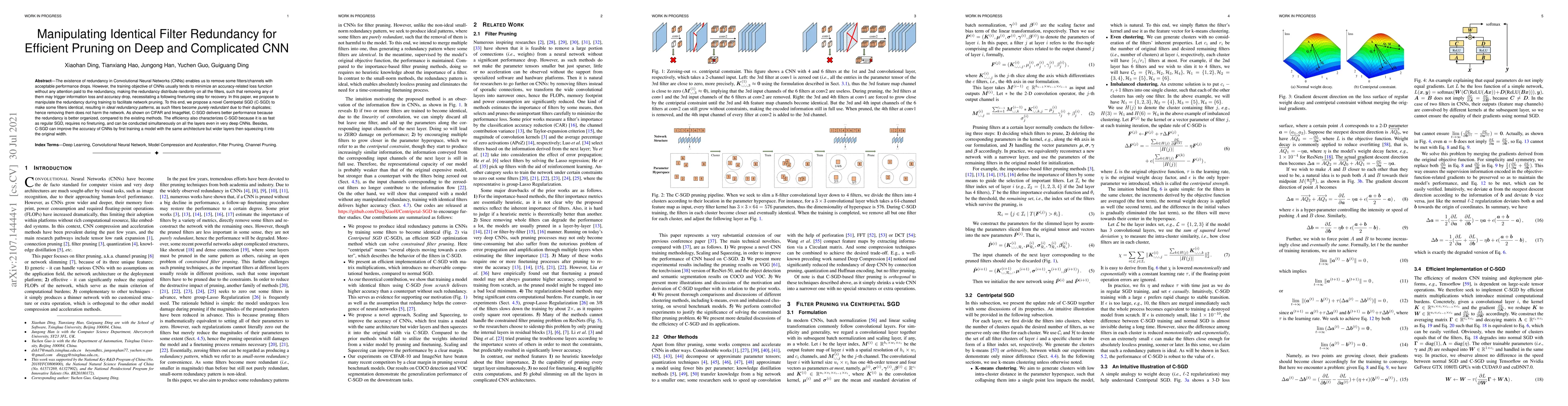 This paper proposes a novel Centripetal SGD (C-SGD) method to manipulate redundancy in CNNs during training, making some filters identical to create ideal redundancy patterns. This allows for efficient pruning without performance loss, finetuning, or layer-specific adjustments, and can improve overall CNN accuracy.