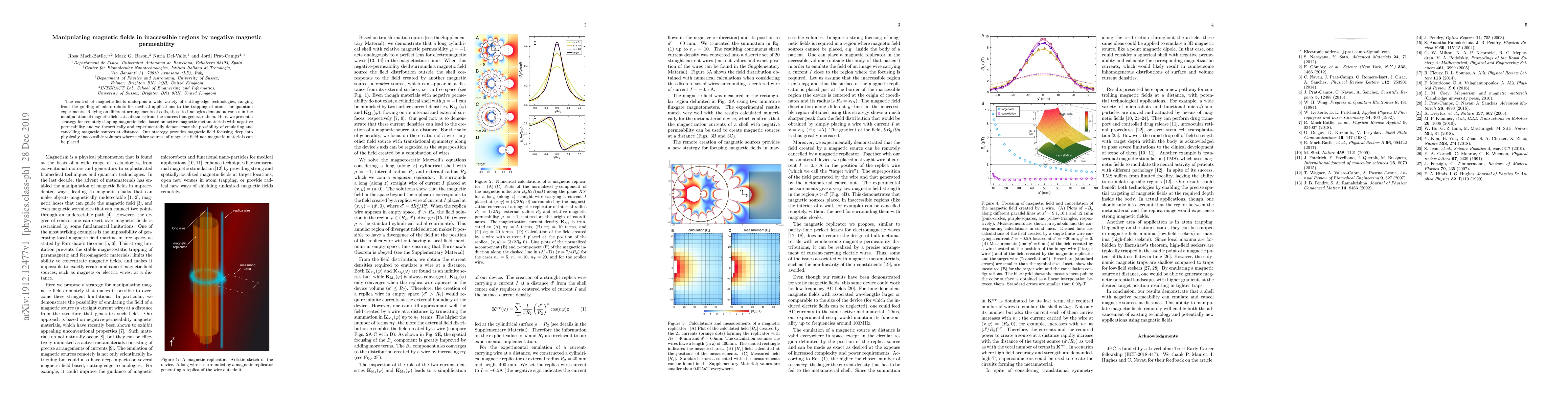 This paper proposes a method for remotely manipulating magnetic fields using active magnetic metamaterials with negative permeability, enabling the shaping and cancellation of magnetic fields in previously inaccessible regions. The technique demonstrates the potential for advanced applications such as guiding micro-robots and trapping atoms for quantum experiments.