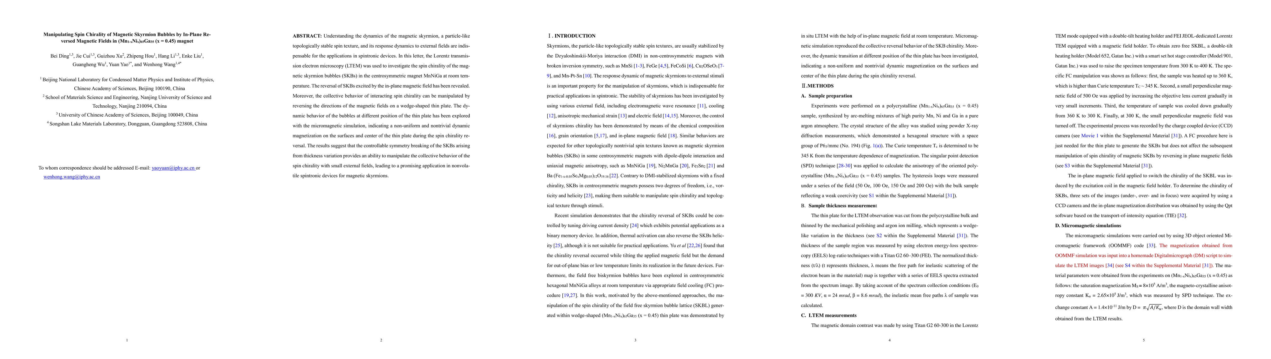 This paper investigates the manipulation of spin chirality in magnetic skyrmion bubbles (SKBs) in MnNiGa using Lorentz transmission electron microscopy (LTEM) and micromagnetic simulations. The study reveals that in-plane magnetic fields can reverse the spin chirality of SKBs, and the collective behavior can be controlled by reversing the field directions on a wedge-shaped thin plate, suggesting potential applications in nonvolatile spintronic devices.