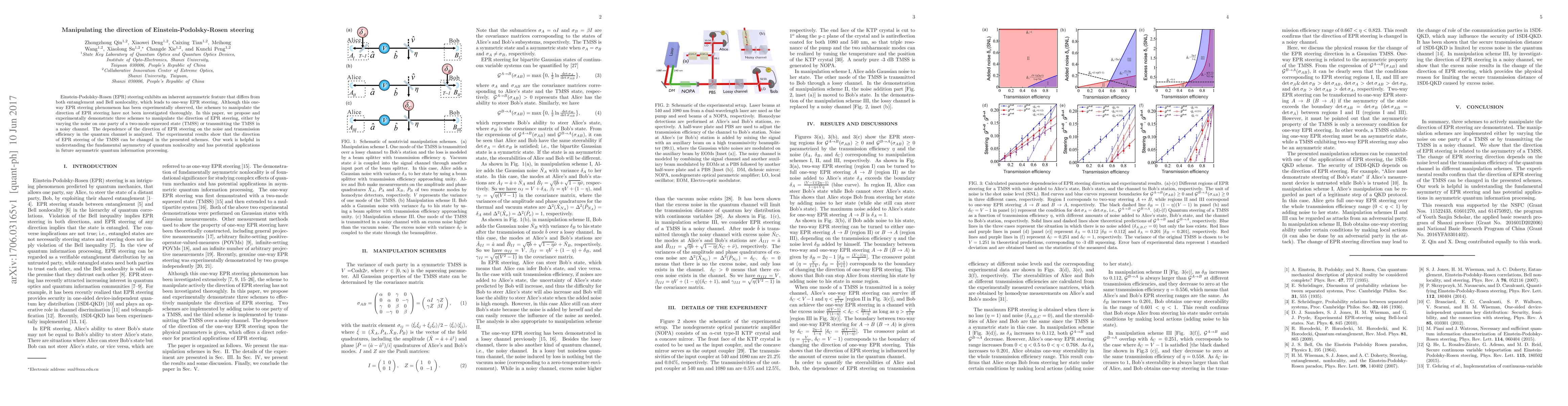 This paper proposes and experimentally demonstrates three schemes to manipulate the direction of Einstein-Podolsky-Rosen (EPR) steering, either by adjusting noise levels or transmitting two-mode squeezed states through noisy channels. The results show that the direction of EPR steering can be altered, contributing to the understanding of quantum nonlocality and potential applications in asymmetric quantum information processing.