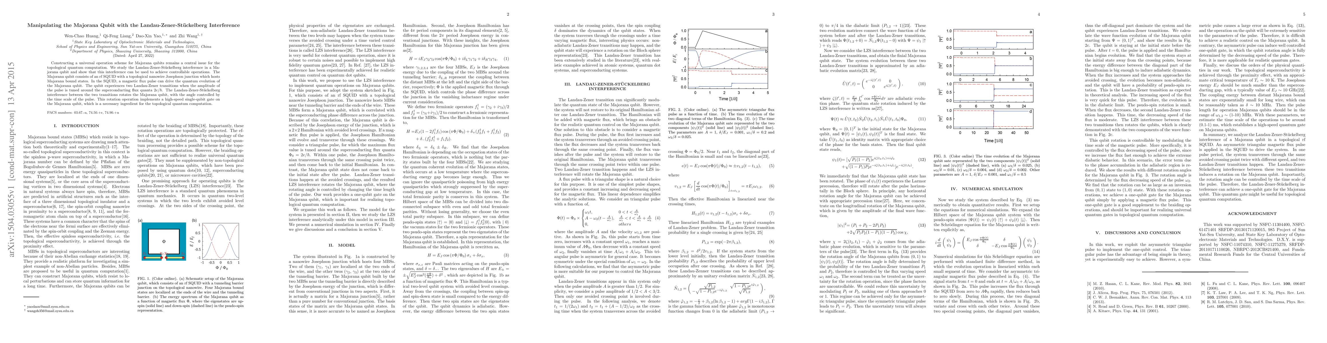 This paper proposes a method for manipulating Majorana qubits using Landau-Zener-Stückelberg interference, demonstrating that it can achieve controllable operations. The technique involves an rf SQUID with a topological nanowire Josephson junction, where a magnetic flux pulse drives the quantum evolution, enabling a high-speed single-qubit gate essential for topological quantum computation.
