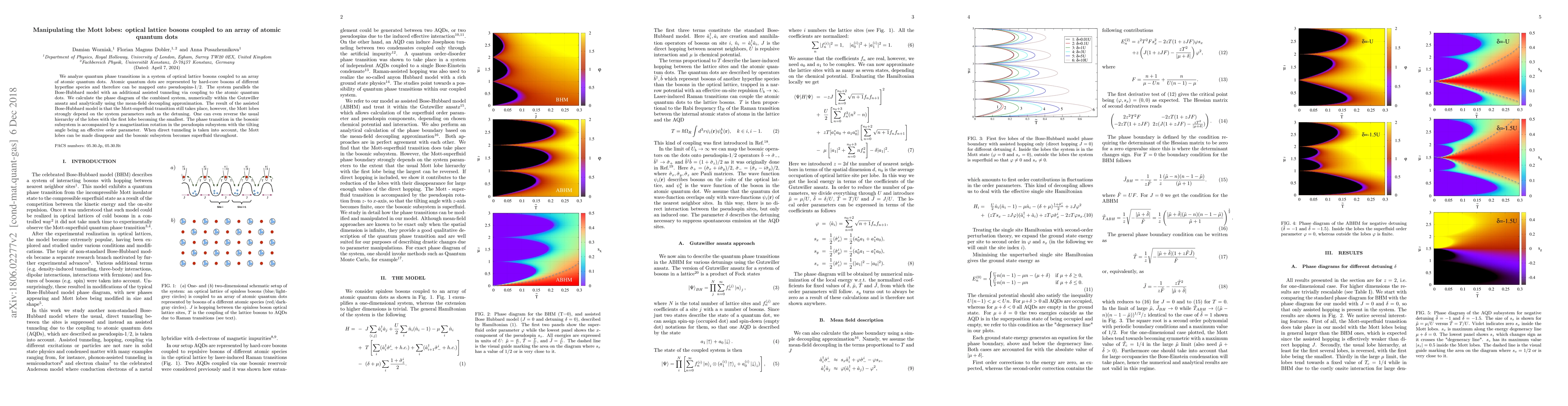 We analyze quantum phase transitions in a system of optical lattice bosons coupled to an array of atomic quantum dots, or pseudospins-1/2. The system parallels the Bose-Hubbard model with a single difference of the direct tunneling between the lattice sites being replaced by an assisted tunneling via coupling to the atomic quantum dots. We calculate the phase diagram of the combined system, numerically within the Gutzwiller ansatz and analytically using the mean-field decoupling approximation. The result of the assisted Bose-Hubbard model is that the Mott-superfluid transition still takes place, however, the Mott lobes strongly depend on the system parameters such as the detuning. One can even reverse the usual hierarchy of the lobes with the first lobe becoming the smallest. The phase transition in the bosonic subsystem is accompanied by a magnetization rotation in the pseudospin subsystem with the tilting angle being an effective order parameter. When direct tunneling is taken into account, the Mott lobes can be made disappear and the bosonic subsystem becomes superfluid throughout.