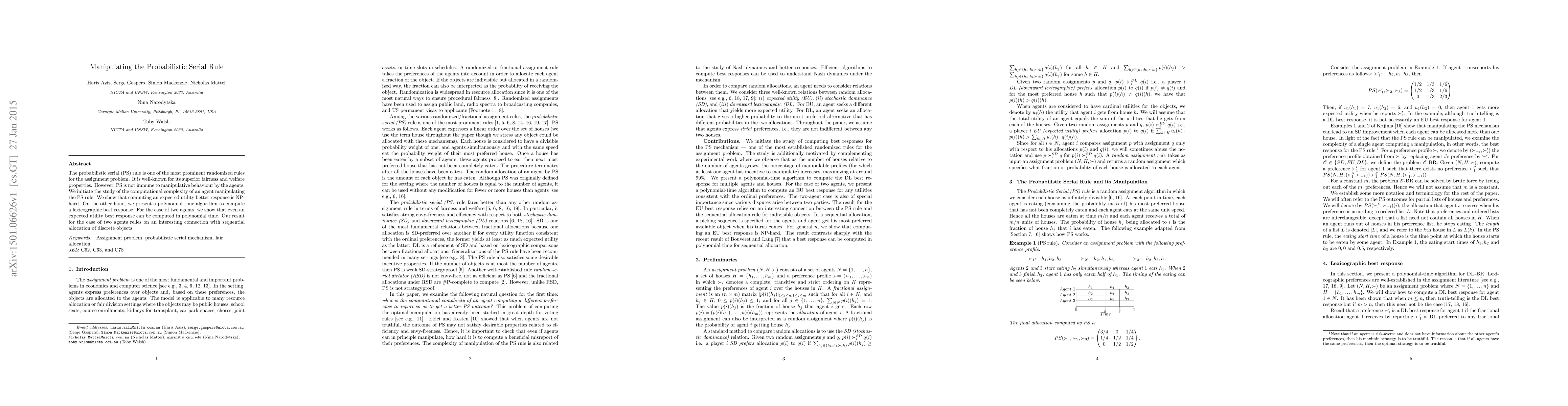 Researchers investigate how agents manipulate the probabilistic serial rule in assignment problems, showing that some responses can be computed quickly while others are NP-hard.