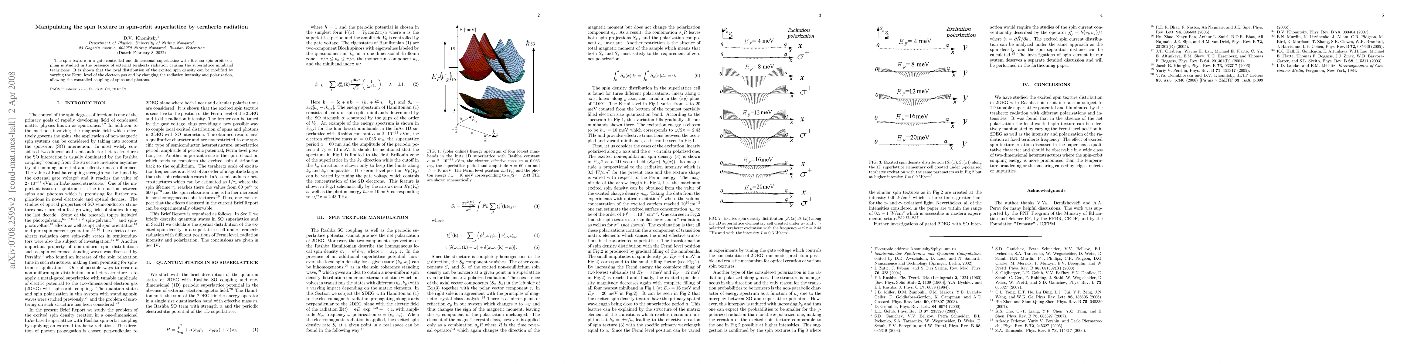 Summary: This research investigates how terahertz radiation affects the spin texture in a gate-controlled superlattice with Rashba spin-orbit coupling, demonstrating that the local spin density distribution can be inverted by adjusting the radiation intensity, enabling the controlled interaction between spins and photons of different polarizations.