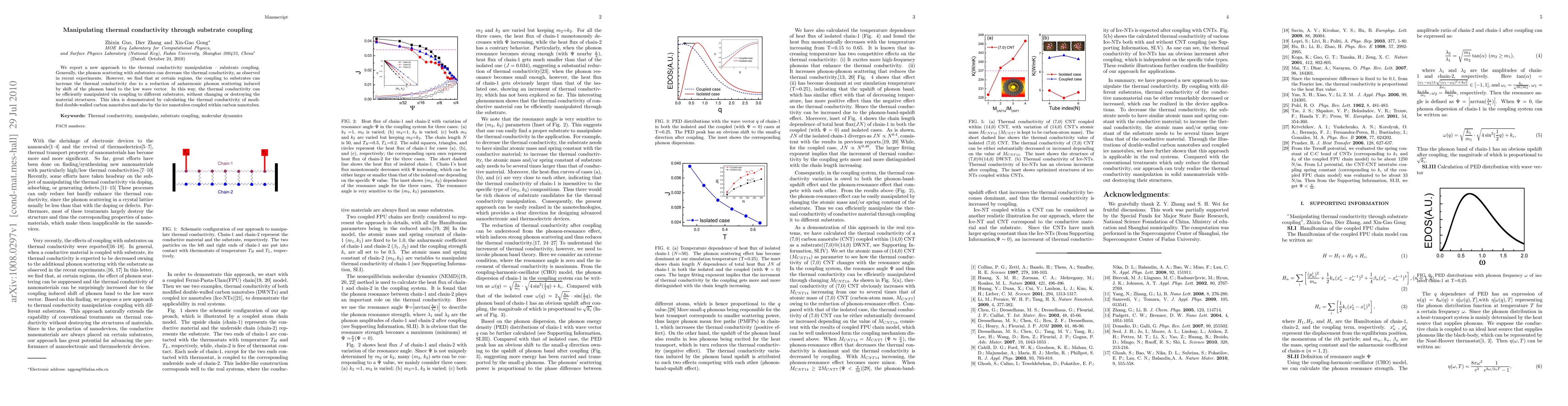 The paper proposes that thermal conductivity can be manipulated through substrate coupling, finding that certain substrate interactions can increase thermal conductivity by reducing anharmonic phonon scattering. This method allows for effective thermal conductivity control without altering material structures, demonstrated through calculations on modified carbon nanotubes and ice nanotubes.