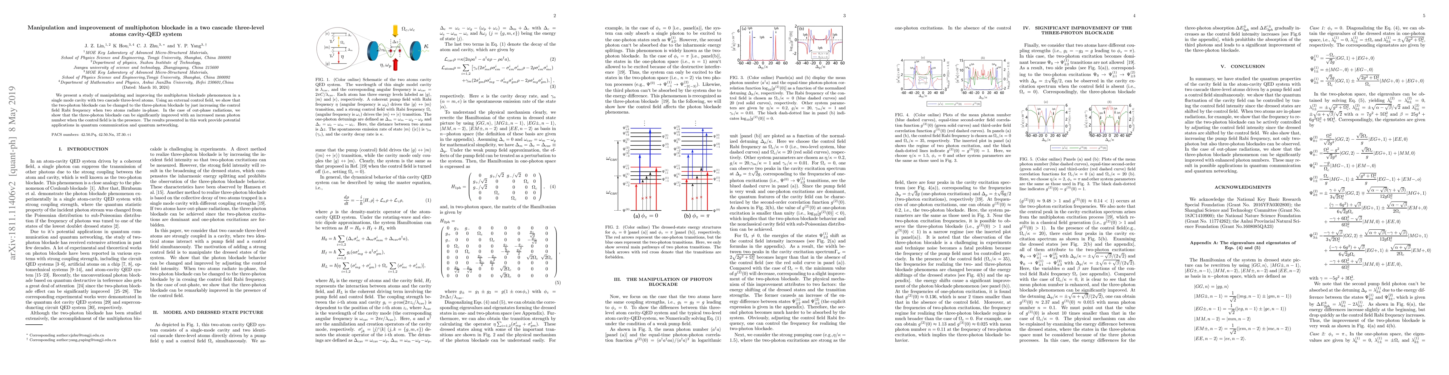 This paper investigates the manipulation of multiphoton blockade in a cavity-QED system using two ladder-type three-level atoms, demonstrating that the two-photon blockade can be converted to a three-photon blockade by adjusting the control field's Rabi frequency. It also shows enhanced three-photon blockade and improved mean photon number for out-phase radiations, paving the way for a two-photon gateway operation in quantum networks.