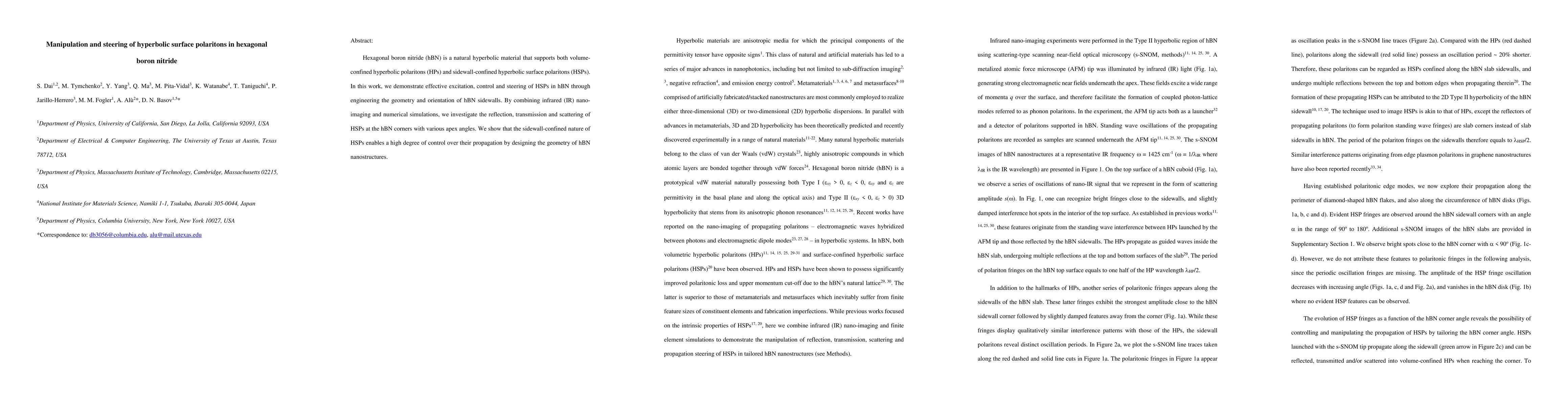This research demonstrates effective manipulation of hyperbolic surface polaritons (HSPs) in hexagonal boron nitride (hBN) by engineering its nanostructure geometry and orientation. Through infrared nano-imaging and simulations, it shows that the sidewall-confined nature of HSPs allows for precise control over their propagation and behavior at hBN corners with different apex angles.