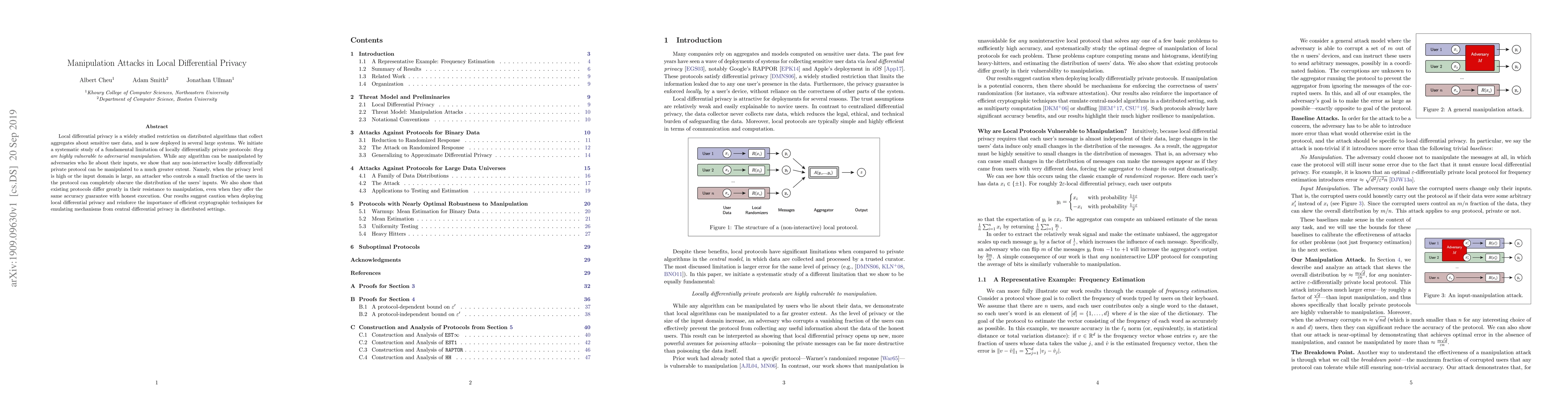 This paper investigates the vulnerability of local differential privacy protocols to adversarial manipulation, demonstrating that non-interactive protocols can be manipulated extensively, especially at high privacy levels or large input domains. It highlights the need for improved cryptographic techniques to enhance the security of local differential privacy deployments.