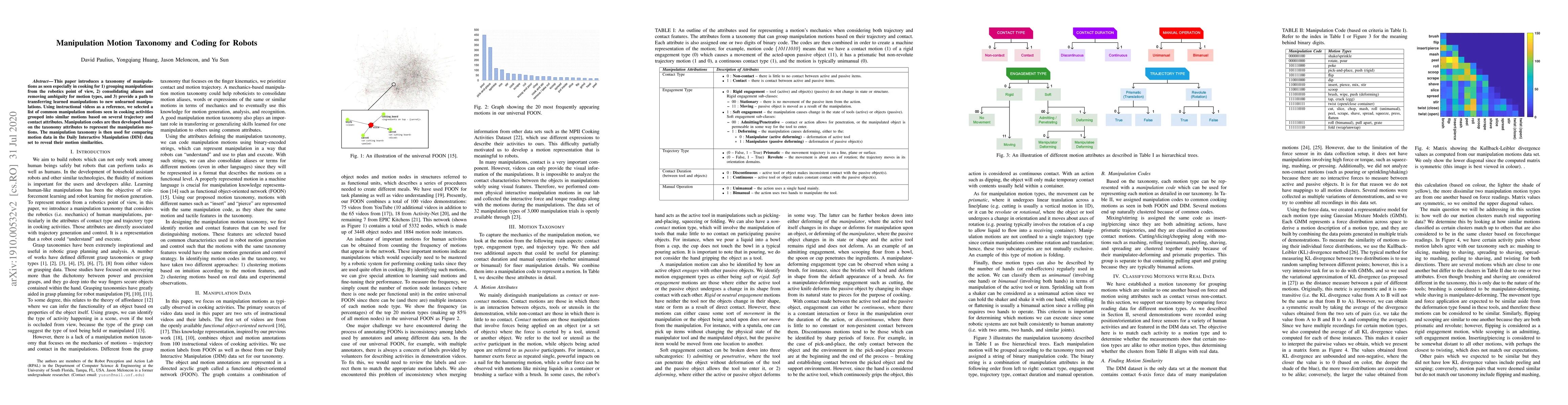 Researchers developed a taxonomy of manipulation motions in cooking, creating codes to represent common motions like chopping and stirring. This framework enables robots to learn and transfer new manipulations.